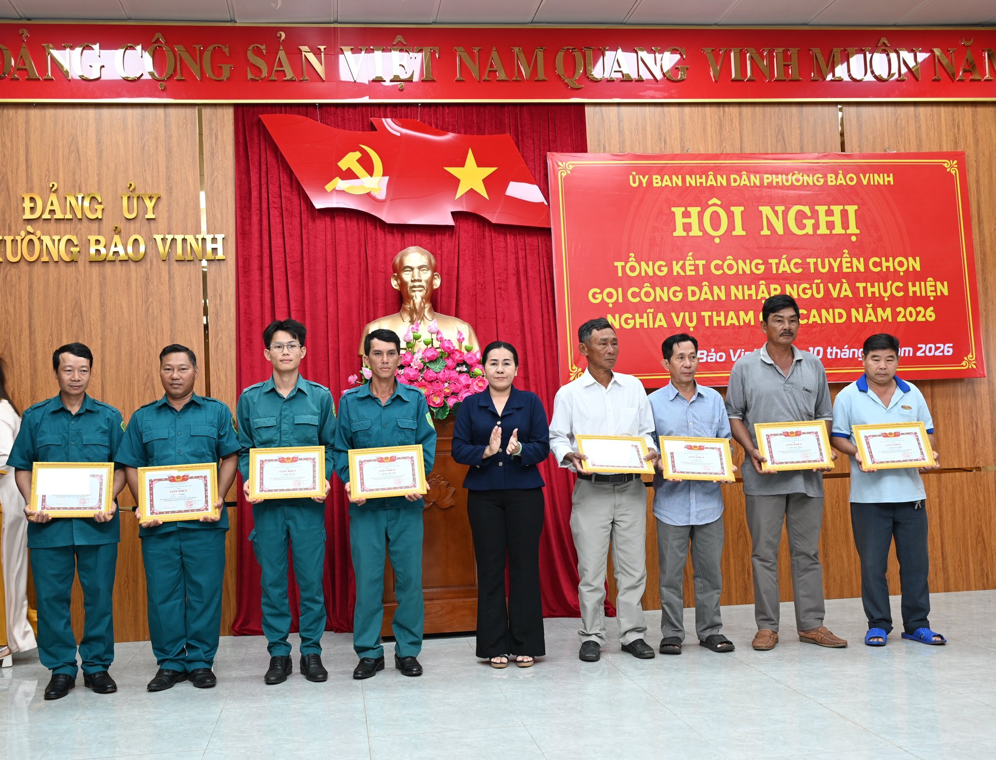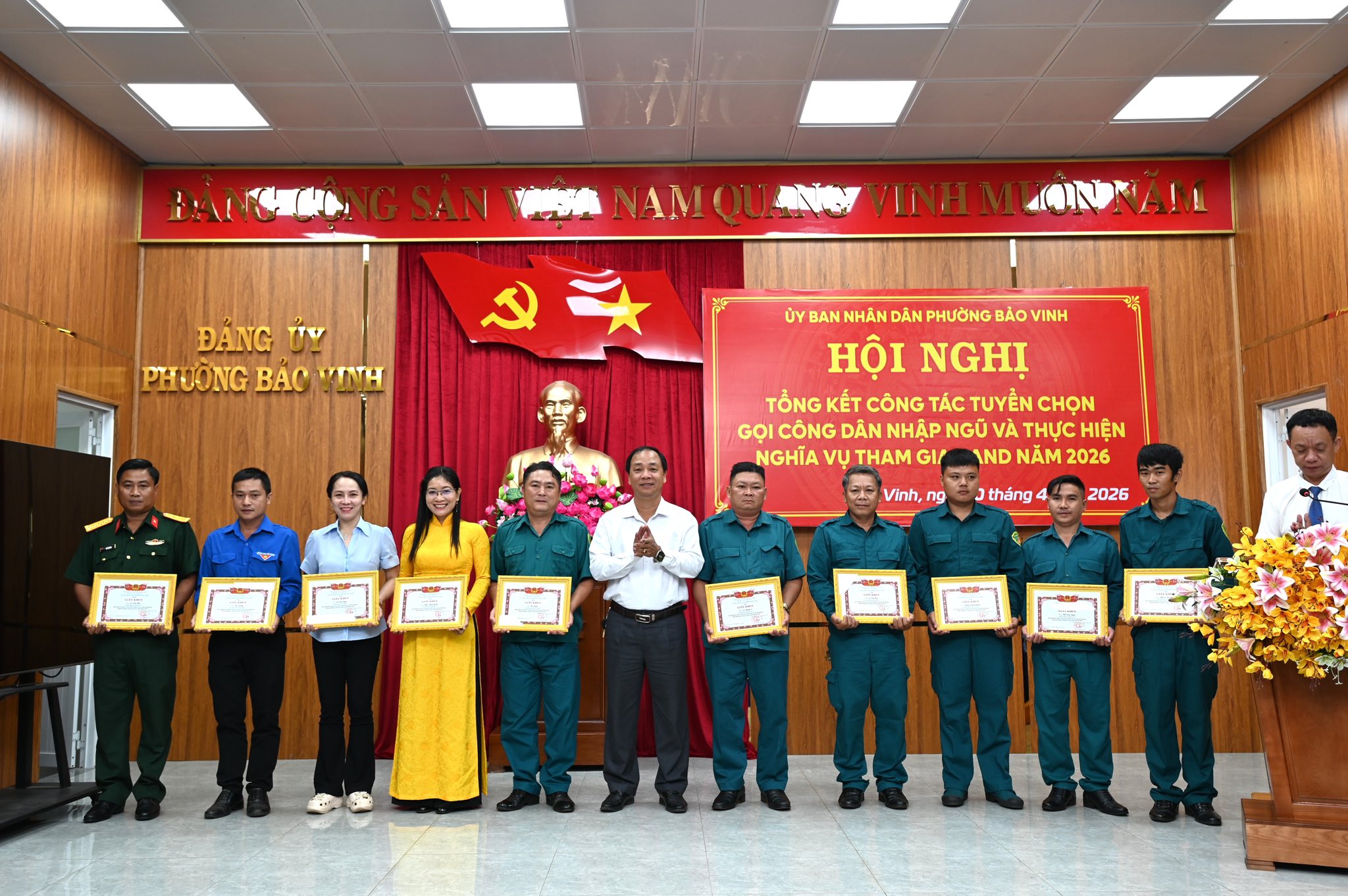 Năm 2026, công tác tuyển chọn và gọi công dân nhập ngũ của phường Bảo Vinh được triển khai chặt chẽ, đúng quy trình, đảm bảo công khai, dân chủ và đúng quy định của pháp luật. Công tác tuyên truyền Luật Nghĩa vụ quân sự và Luật Công an nhân dân được đẩy mạnh, góp phần nâng cao nhận thức của nhân dân và thanh niên trong độ tuổi.