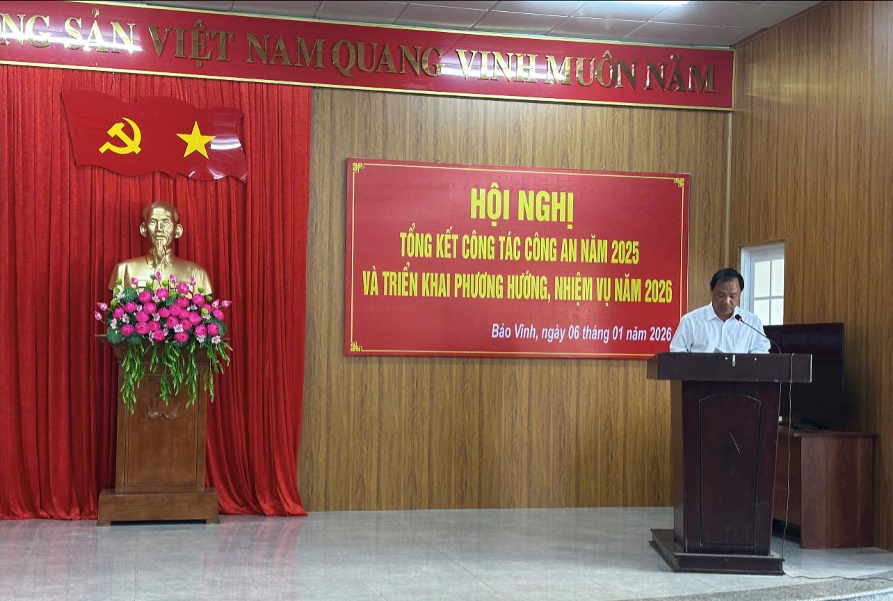 Sáng 06/01/2025, tại Hội trường Đảng ủy phường Bảo Vinh, Công an phường Bảo Vinh long trọng tổ chức Hội nghị tổng kết công tác Công an năm 2025. Hội nghị được tổ chức nhằm nhìn nhận, đánh giá toàn diện những kết quả đạt được trong năm qua, chỉ ra những tồn tại, hạn chế và xác định các nhiệm vụ trọng tâm trong thời gian tới.