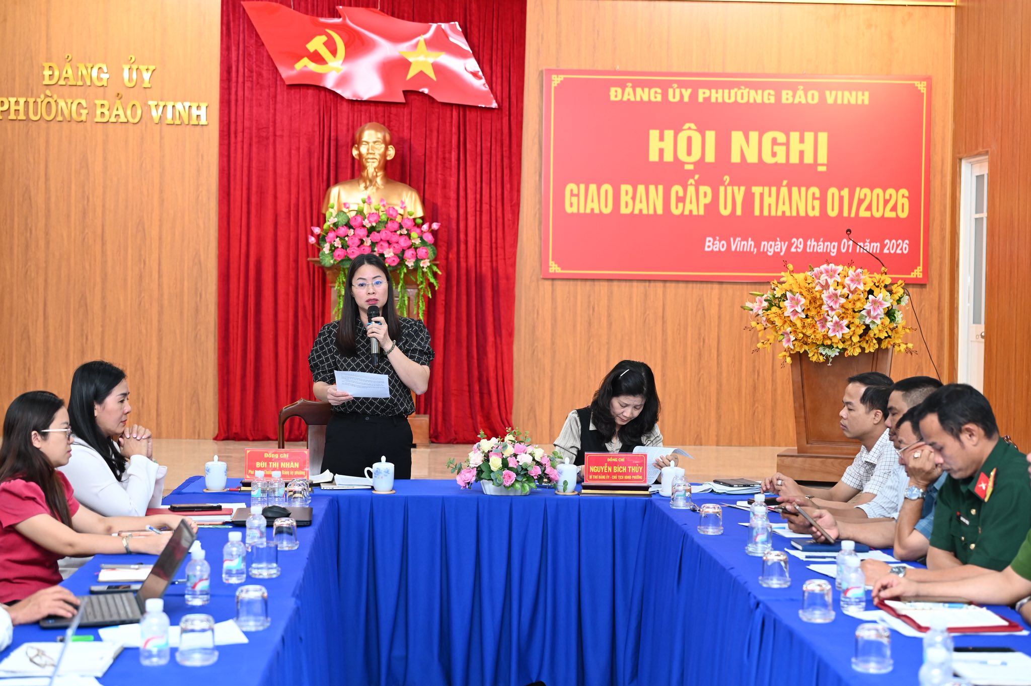 Đồng chí Nguyễn Bích Thủy – Bí thư Đảng ủy, Chủ tịch HĐND phường, đồng chí Bùi Thị Nhàn - Phó Bí thư Thường trực Đảng ủy phường đồng chủ trì hội nghị. Dự hội nghị có các đồng chí trong BTV, BCH Đảng bộ phường, Bí thư các Chi, Đảng bộ cơ sở và Chi bộ các khu phố thuộc Đảng bộ phường; lãnh đạo các phòng ban chuyên môn, các ban ngành đoàn thể phường cùng tham dự.