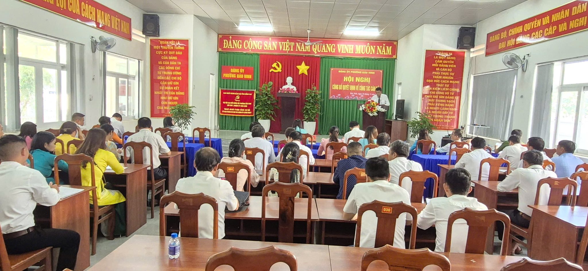 - Điều động đồng chí Trần Văn Kim - Ủy viên Ban Thường vụ Đảng ủy, Trưởng Ban xây dựng Đảng phường Bảo Vinh đến nhận công tác tại UBND phường, giới thiệu bổ nhiệm giữ chức vụ Trưởng phòng Văn hóa-Xã hội phường Bảo Vinh;