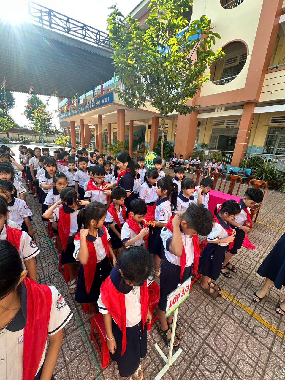 Tại buổi lễ, các em đội viên mới đã được đeo khăn quàng đỏ – biểu tượng thiêng liêng của tuổi thơ Việt Nam và cùng nhau tuyên thệ thực hiện tốt 5 điều Bác Hồ dạy, thể hiện quyết tâm học tập, rèn luyện để trở thành con ngoan, trò giỏi, đội viên tốt
