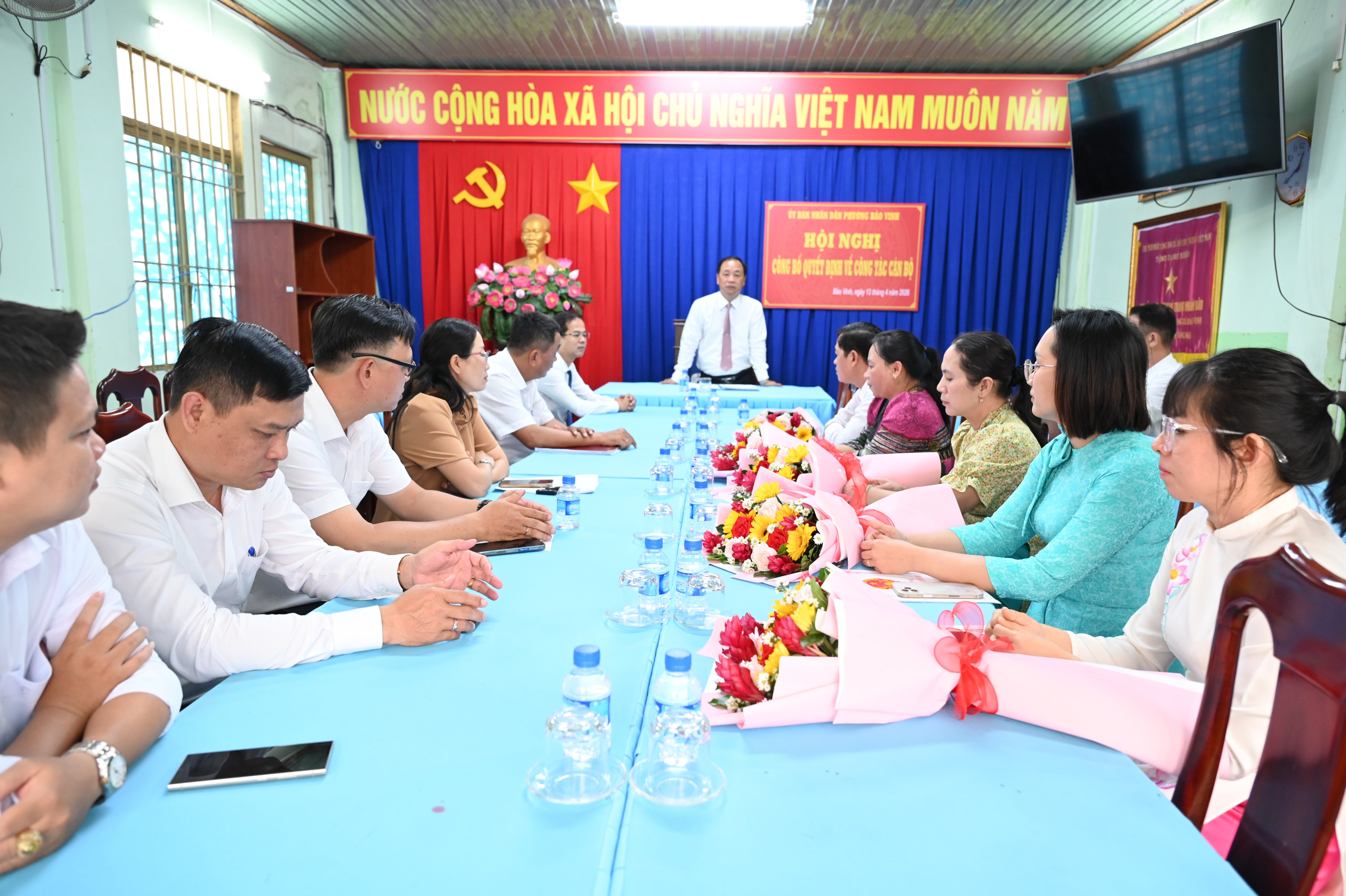 Phát biểu tại hội nghị, đồng chí Bùi Quốc Thể – Chủ tịch UBND phường ghi nhận và chúc mừng các công chức được nhận quyết định; đồng thời đề nghị trên cương vị công tác mới, các đồng chí tiếp tục phát huy năng lực, tinh thần trách nhiệm, đoàn kết cùng tập thể, góp phần thực hiện thắng lợi các nhiệm vụ phát triển kinh tế – xã hội của địa phương.