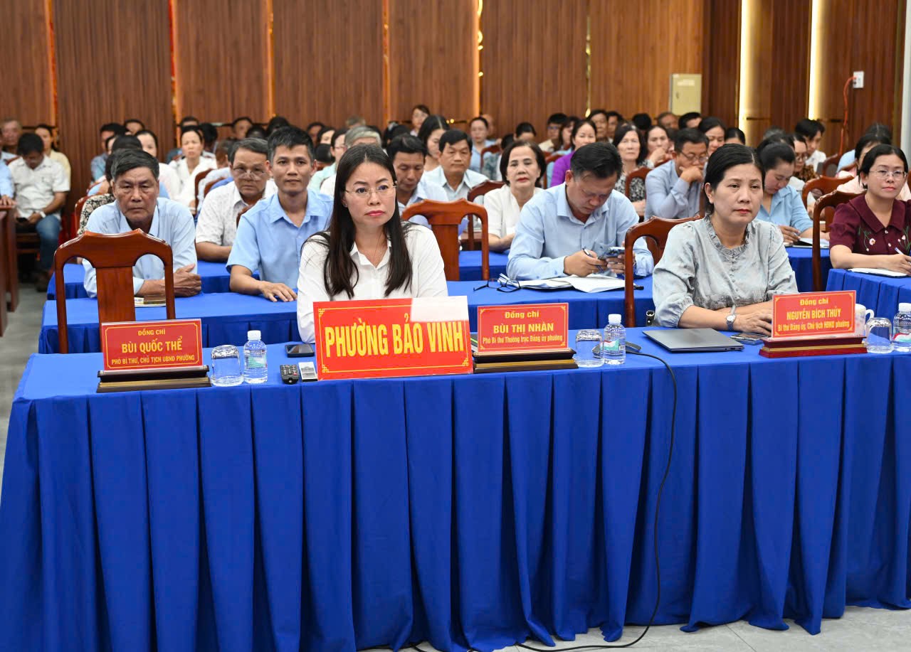 Tại điểm cầu phường Bảo Vinh, Dự có đồng chí Nguyễn Bích Thủy – Bí thư Đảng ủy- Chủ tịch HĐND phường; đồng chí Bùi Thị Nhàn – Phó Bí thư Thường trực Đảng ủy phường; Thành viên Ban chỉ đạo bầu cử phường; Các thành viên Ủy ban bầu cử phường; Bí thư, Phó Bí thư Đảng ủy phường; Thường trực Hội đồng nhân dân, Thường trực Ủy ban nhân dân, Ban Thường trực Ủy ban Mặt trận Tổ quốc phường; Các thành viên 06 Ban bầu cử phường; thành viên Tổ Nghiệp vụ - Tổng hợp giúp việc UBBC phường.