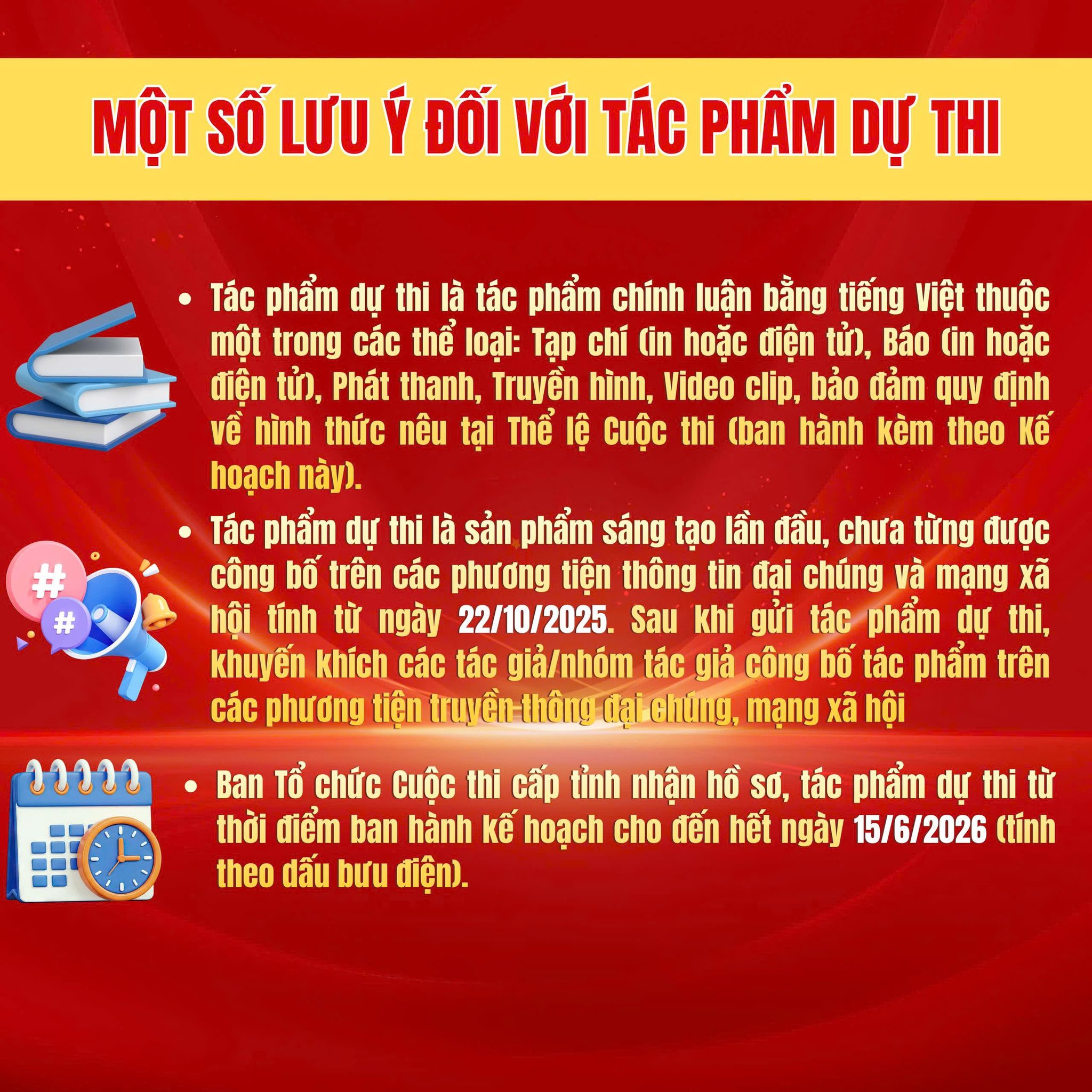 Nơi nhận tác phẩm dự thi: Ban Tuyên giáo và Dân vận Tỉnh ủy Đồng Nai. Địa chỉ: Số 15 Võ Thị Sáu, phường Trấn Biên, tỉnh Đồng Nai.