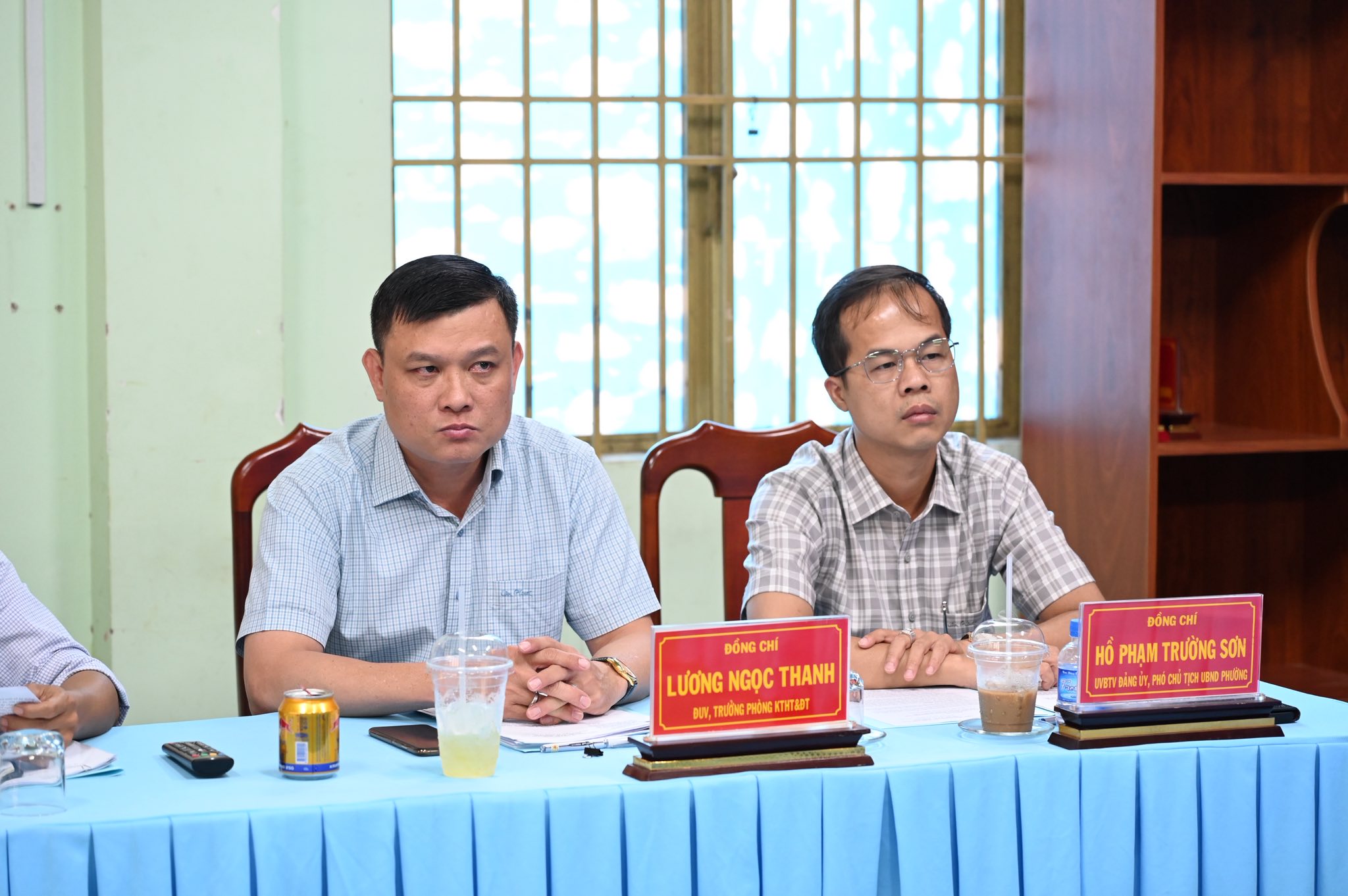 Tiếp và làm việc với Đoàn giám sát có ông Hồ Phạm Trường Sơn - Ủy viên Ban Thường vụ Đảng ủy, Phó Chủ tịch UBND phường; cùng dự có lãnh đạo, chuyên viên Phòng Kinh tế, Hạ tầng và Đô thị, trưởng khu phố trên địa bàn phường.