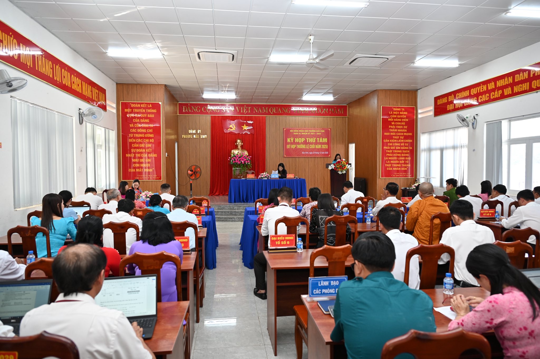 Dự kỳ họp có đồng chí Bùi Thị Nhàn - Phó Bí thư Thường trực Đảng ủy phường; đồng chí Bùi Quốc Thể - Phó Bí thư Đảng ủy, Chủ tịch UBND phường; đồng chí Phan Nguyễn Đoan Hạnh - UV.BTV Đảng ủy - Chủ tịch UBMTTQ Việt Nam phường; Lãnh đạo UBND phường, trưởng các phòng ban chuyên môn; Bí thư, Trưởng khu, Trưởng ban công Mặt trận các khu phố và đại diện cử tri trên địa bàn tham dự.