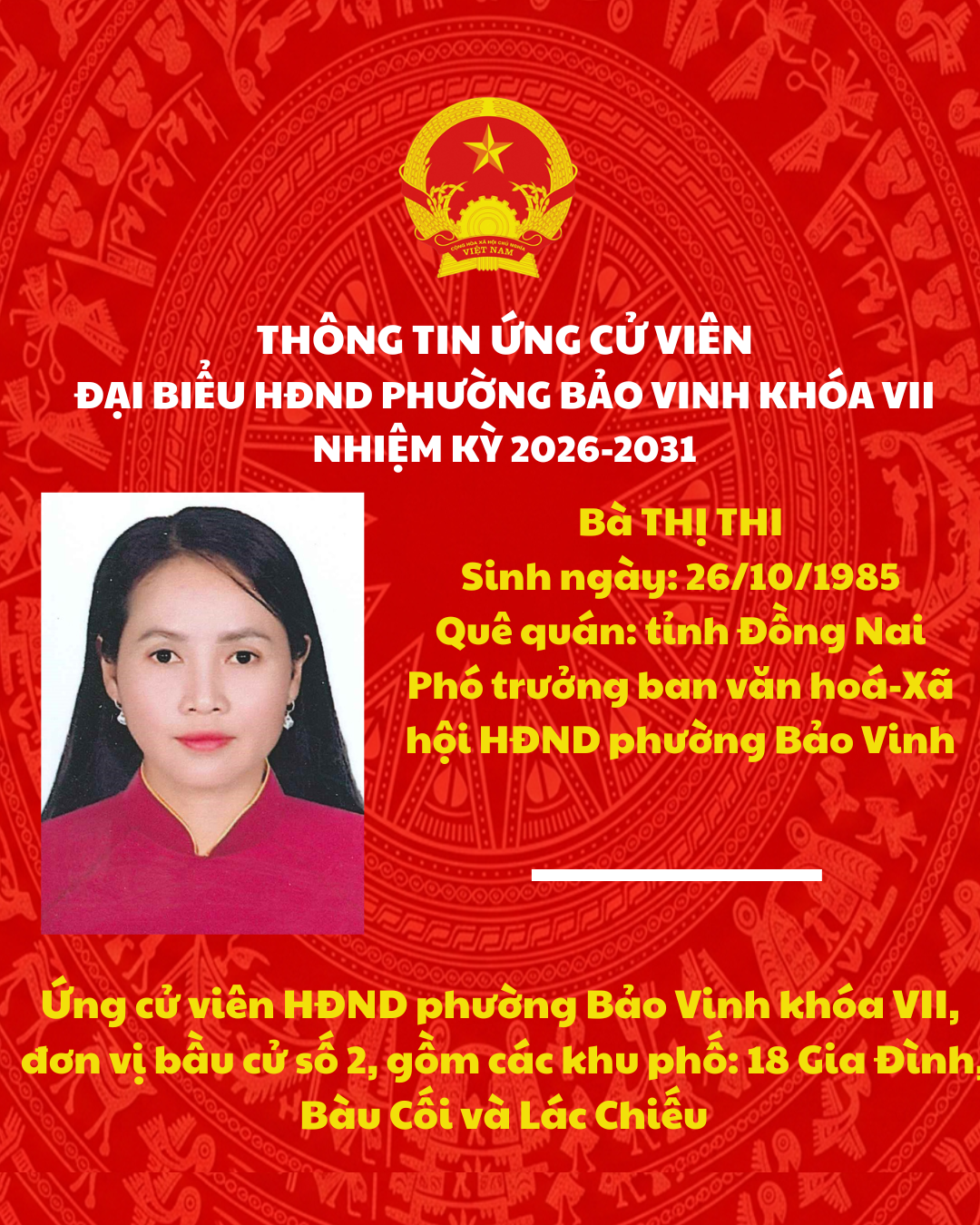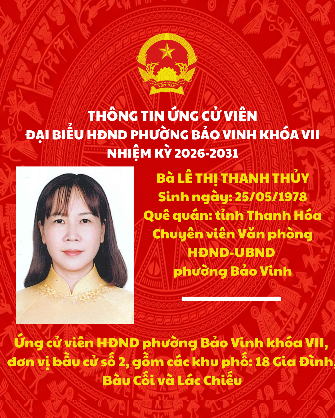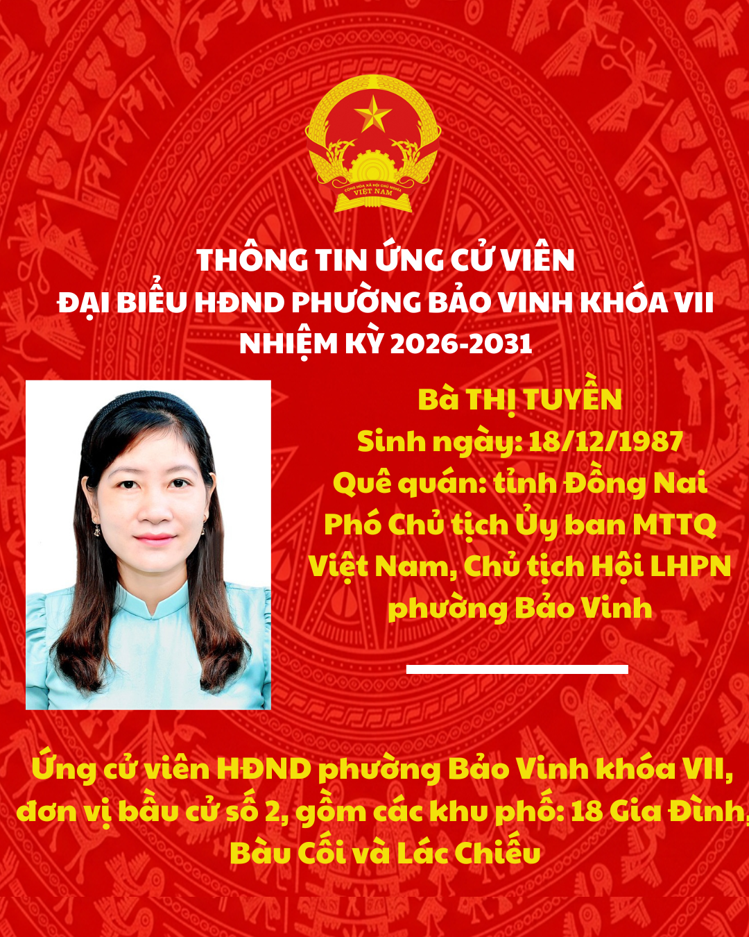 THÔNG TIN ỨNG CỬ VIÊN ĐẠI BIỂU HĐND PHƯỜNG BẢO VINH KHÓA VII NHIỆM KỲ 2026-2031
