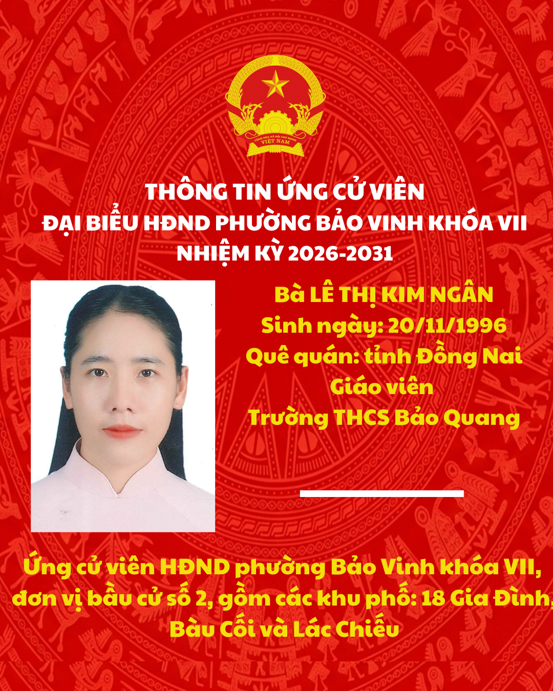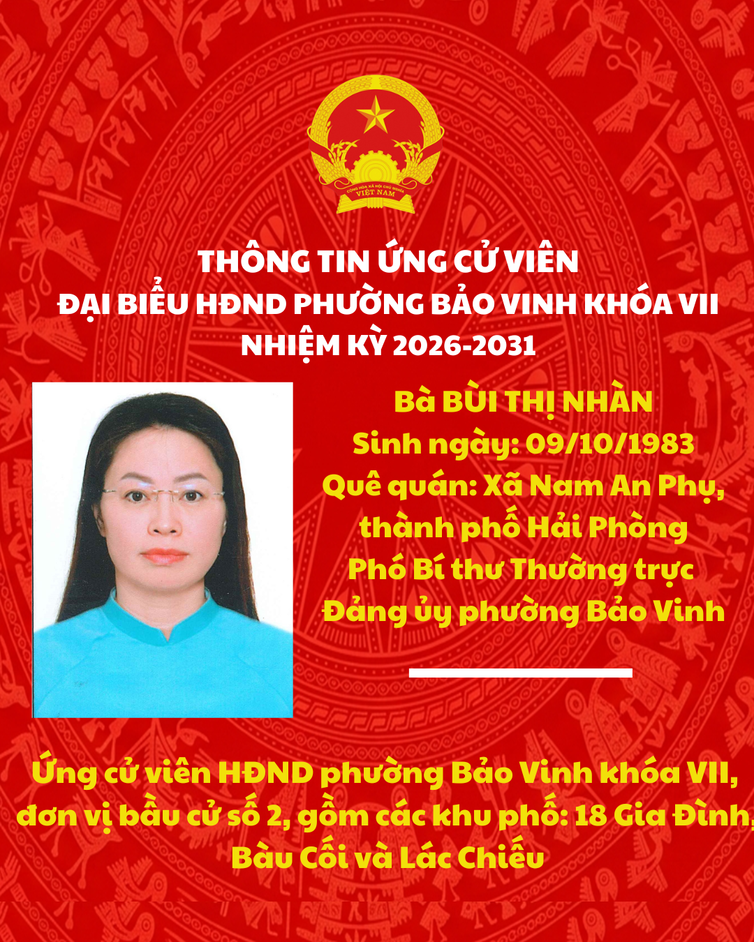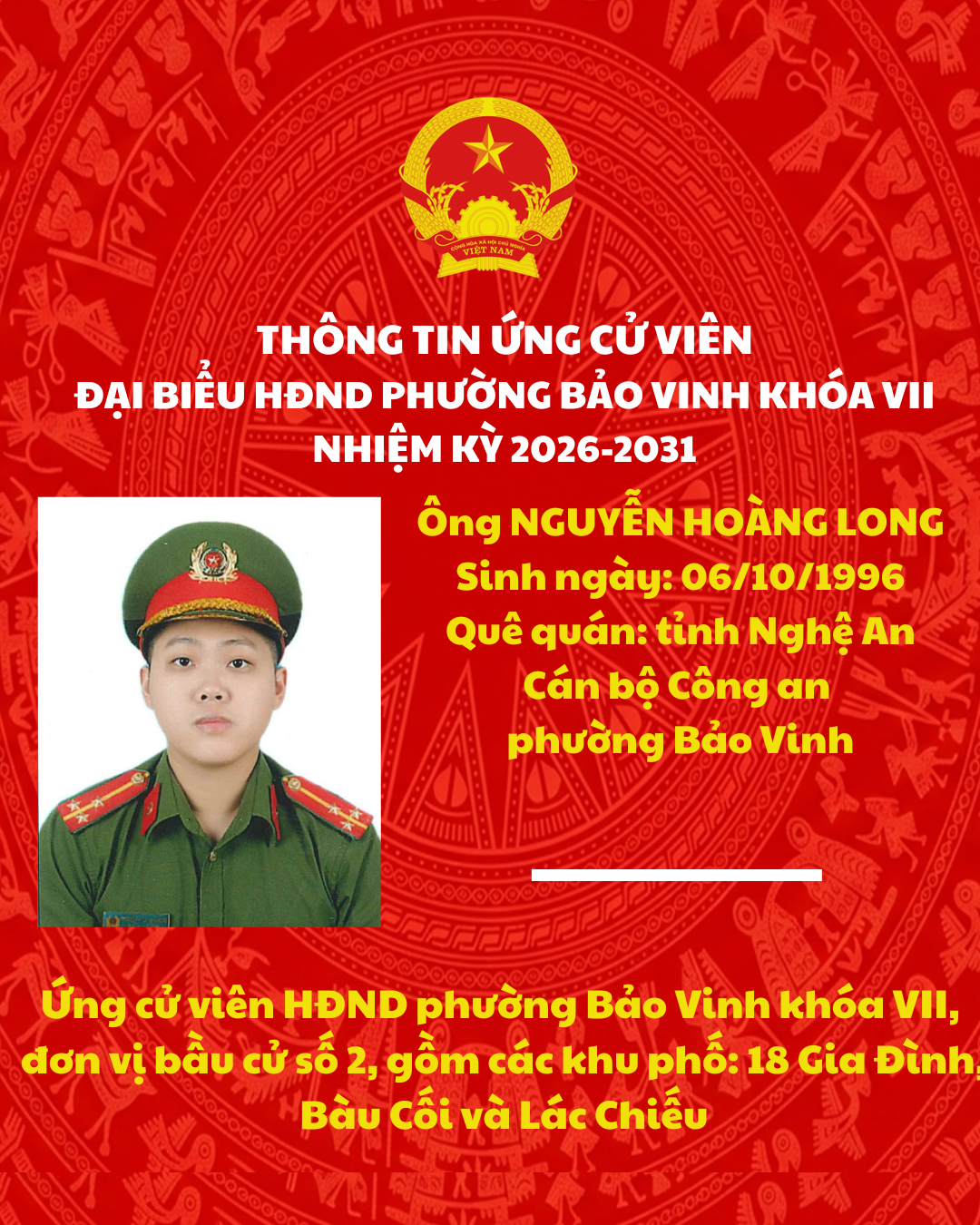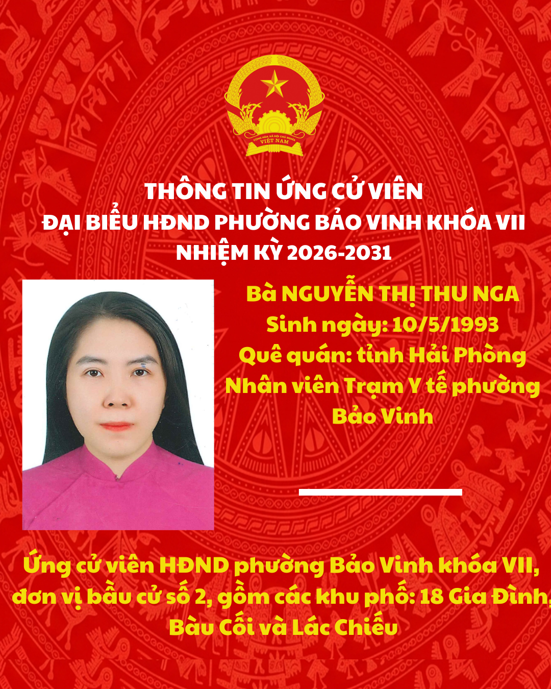 THÔNG TIN ỨNG CỬ VIÊN ĐẠI BIỂU HĐND PHƯỜNG BẢO VINH KHÓA VII NHIỆM KỲ 2026-2031