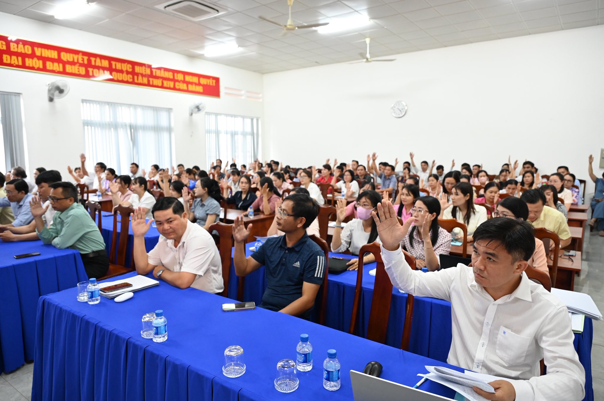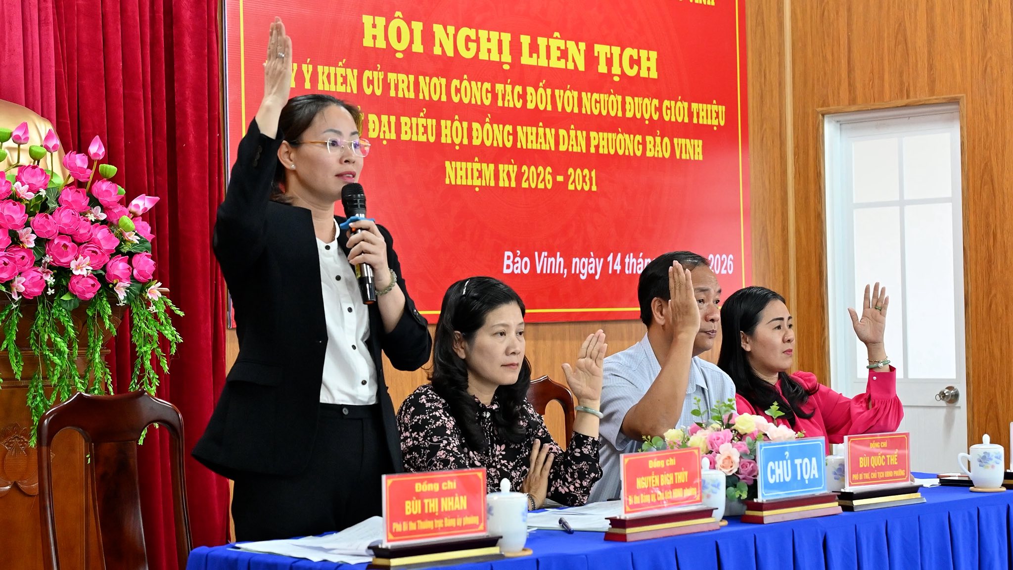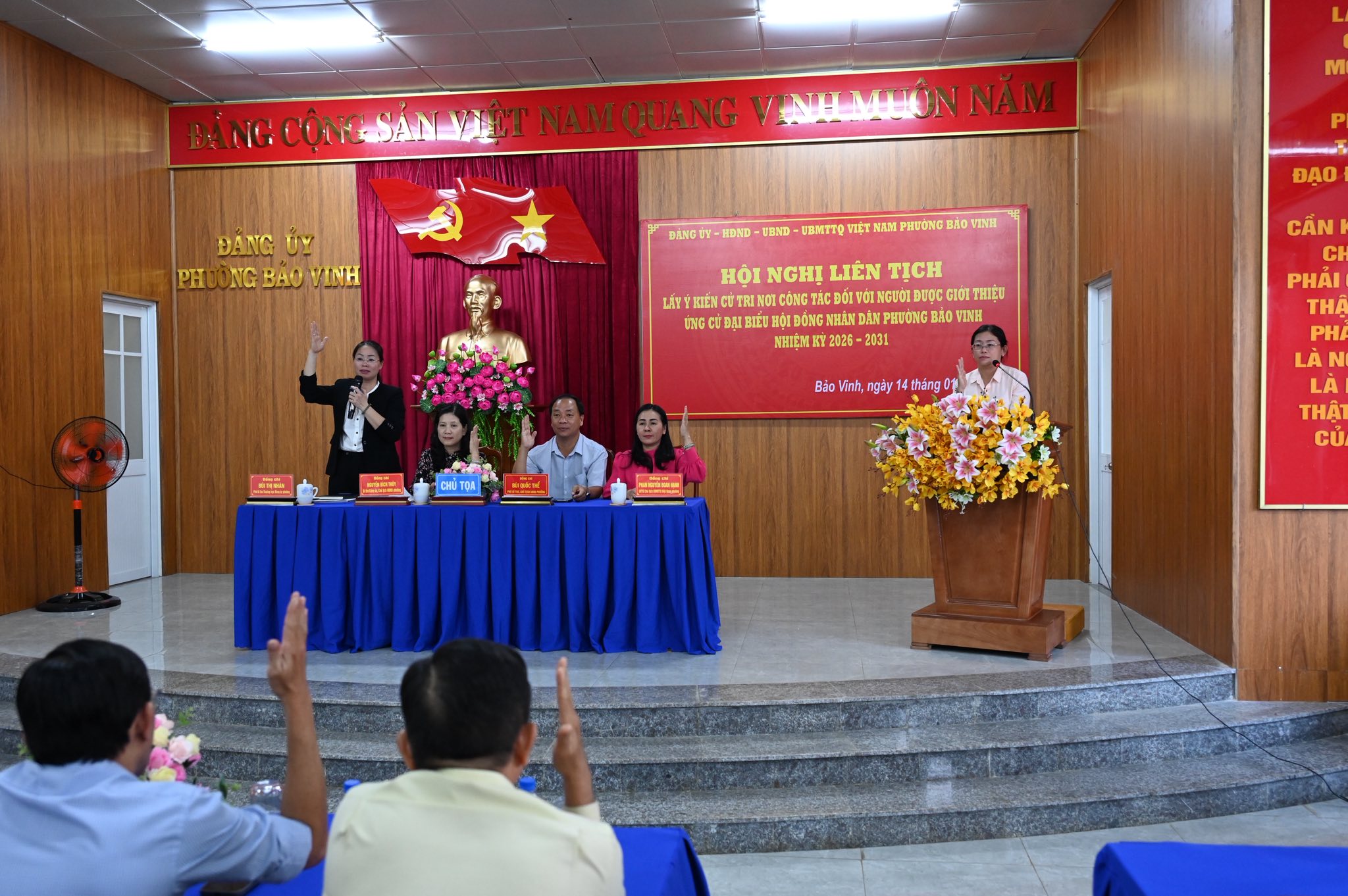 Với tinh thần dân chủ, trách nhiệm và thống nhất cao, 100% cử tri tham dự hội nghị đã biểu quyết bằng hình thức giơ tay thống nhất danh sách 22 người đang công tác tại Đảng ủy, HĐND, UBND, Ủy ban MTTQ Việt Nam và các tổ chức chính trị - xã hội phường được giới thiệu ứng cử đại biểu HĐND phường, nhiệm kỳ 2026 - 2031.
