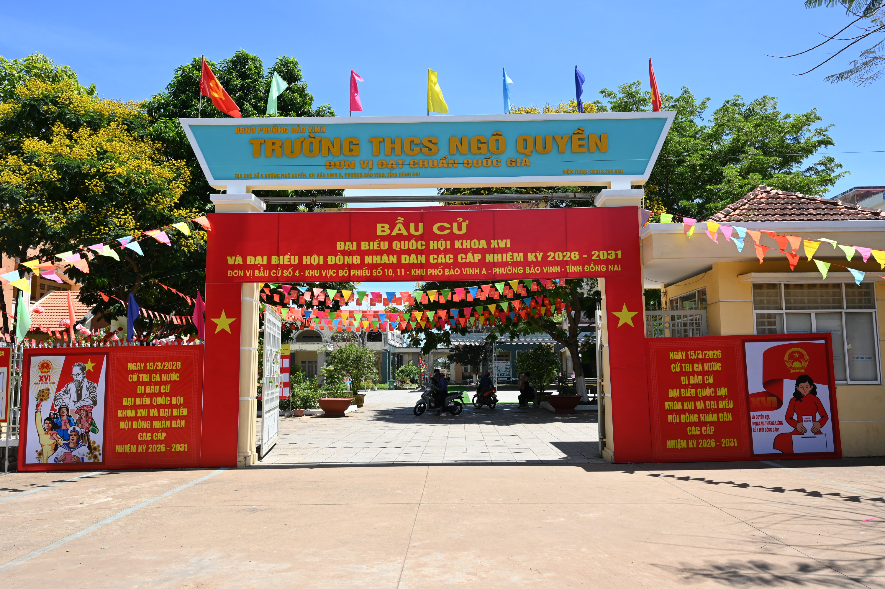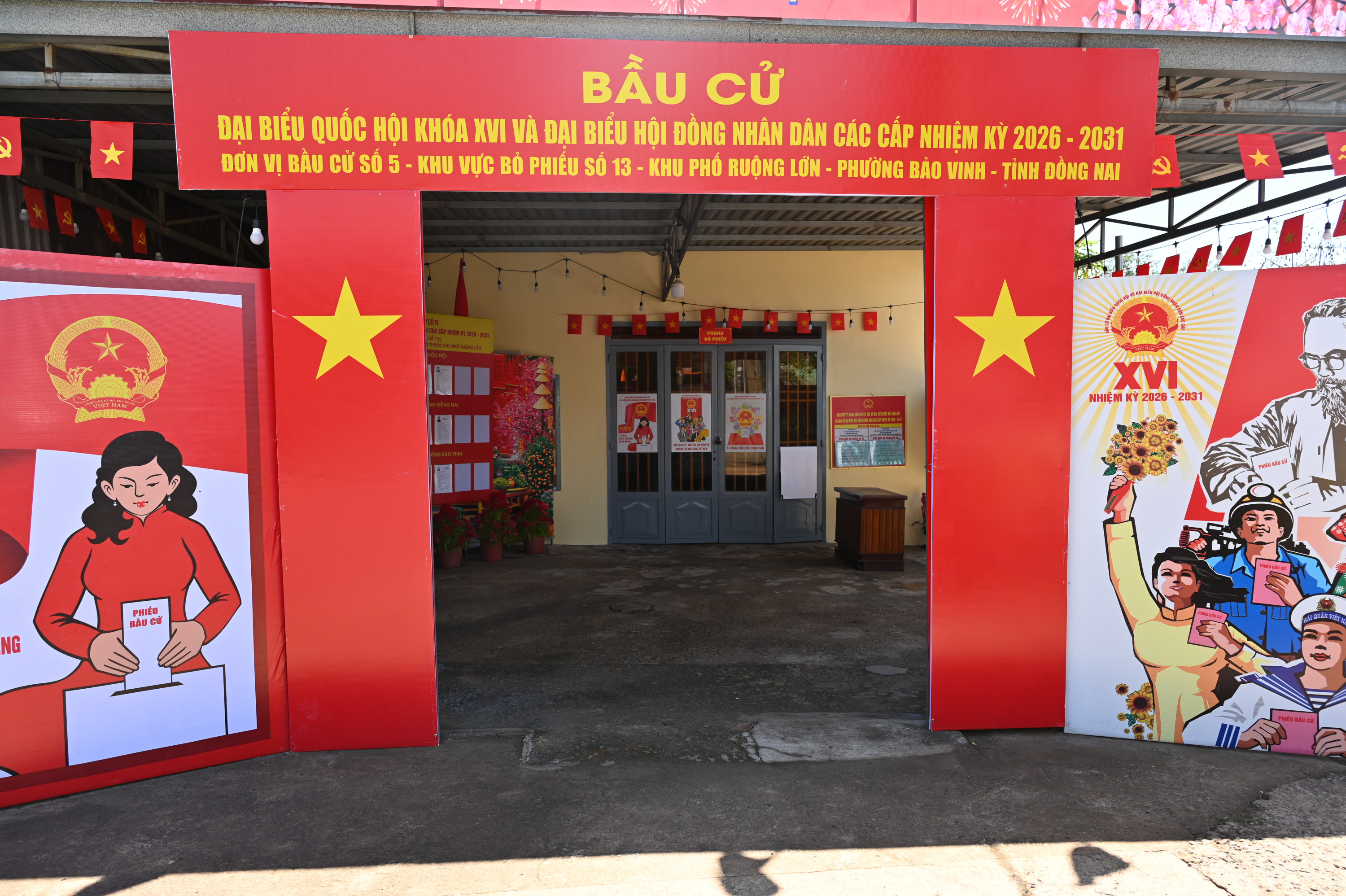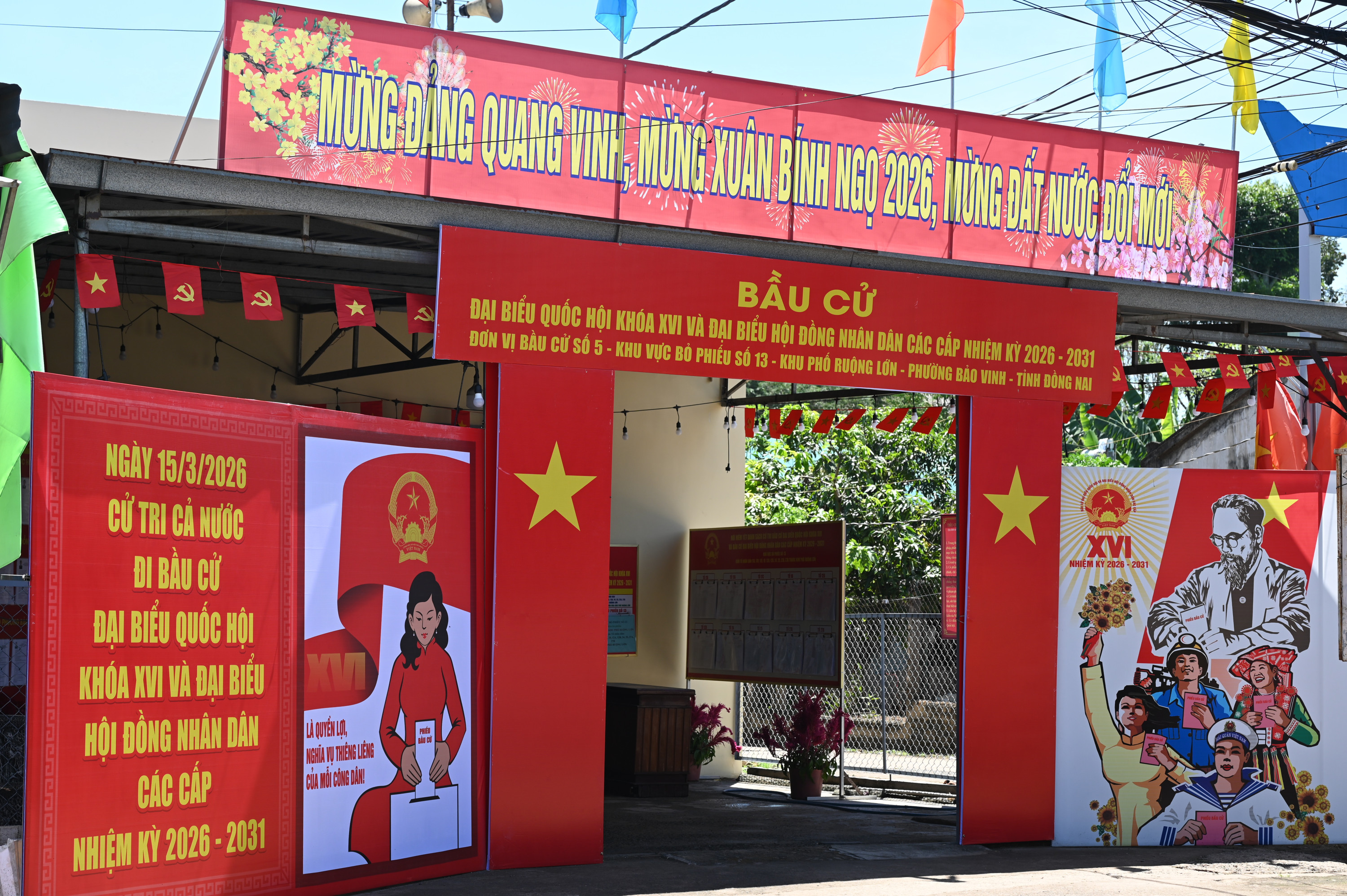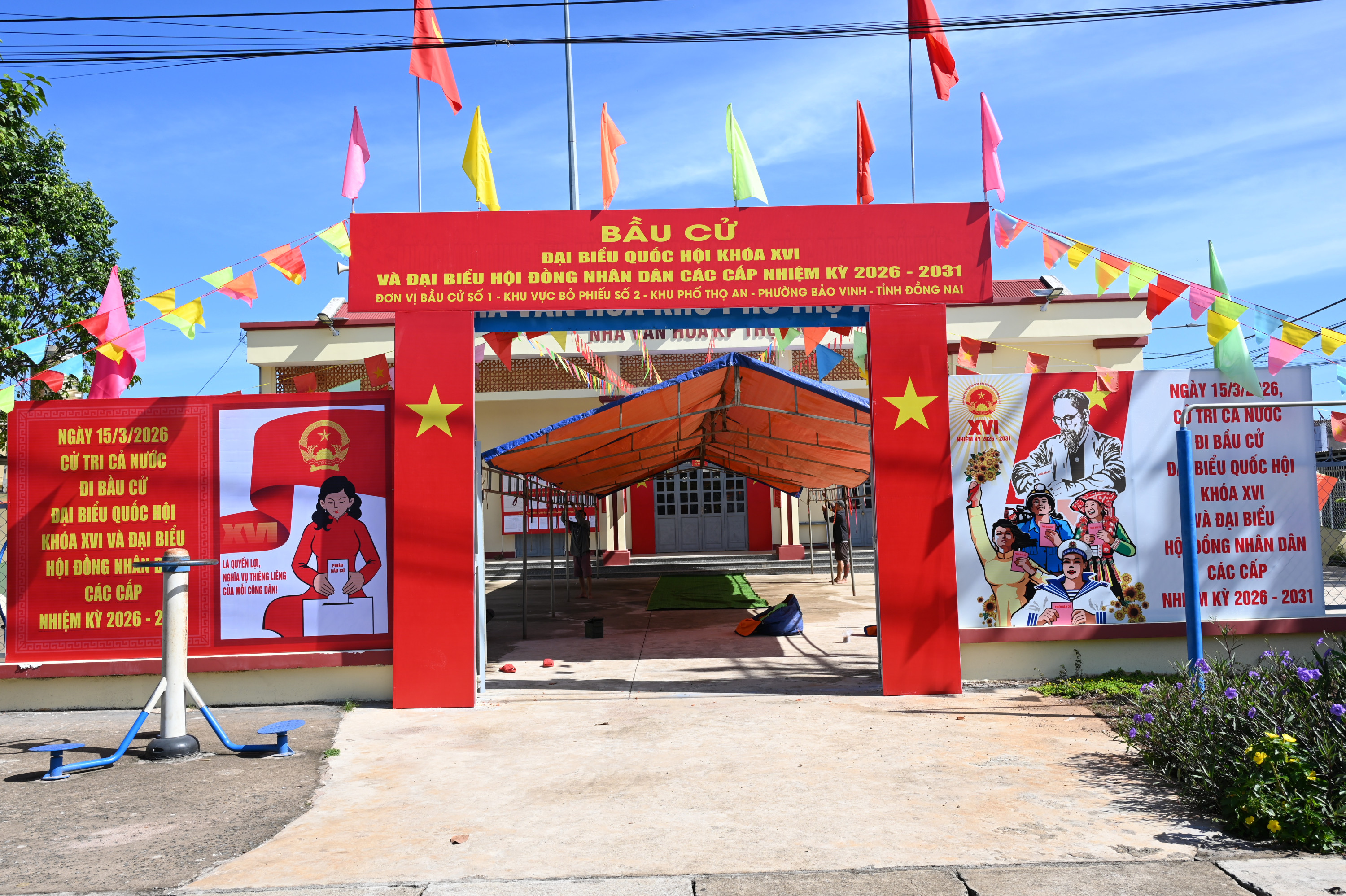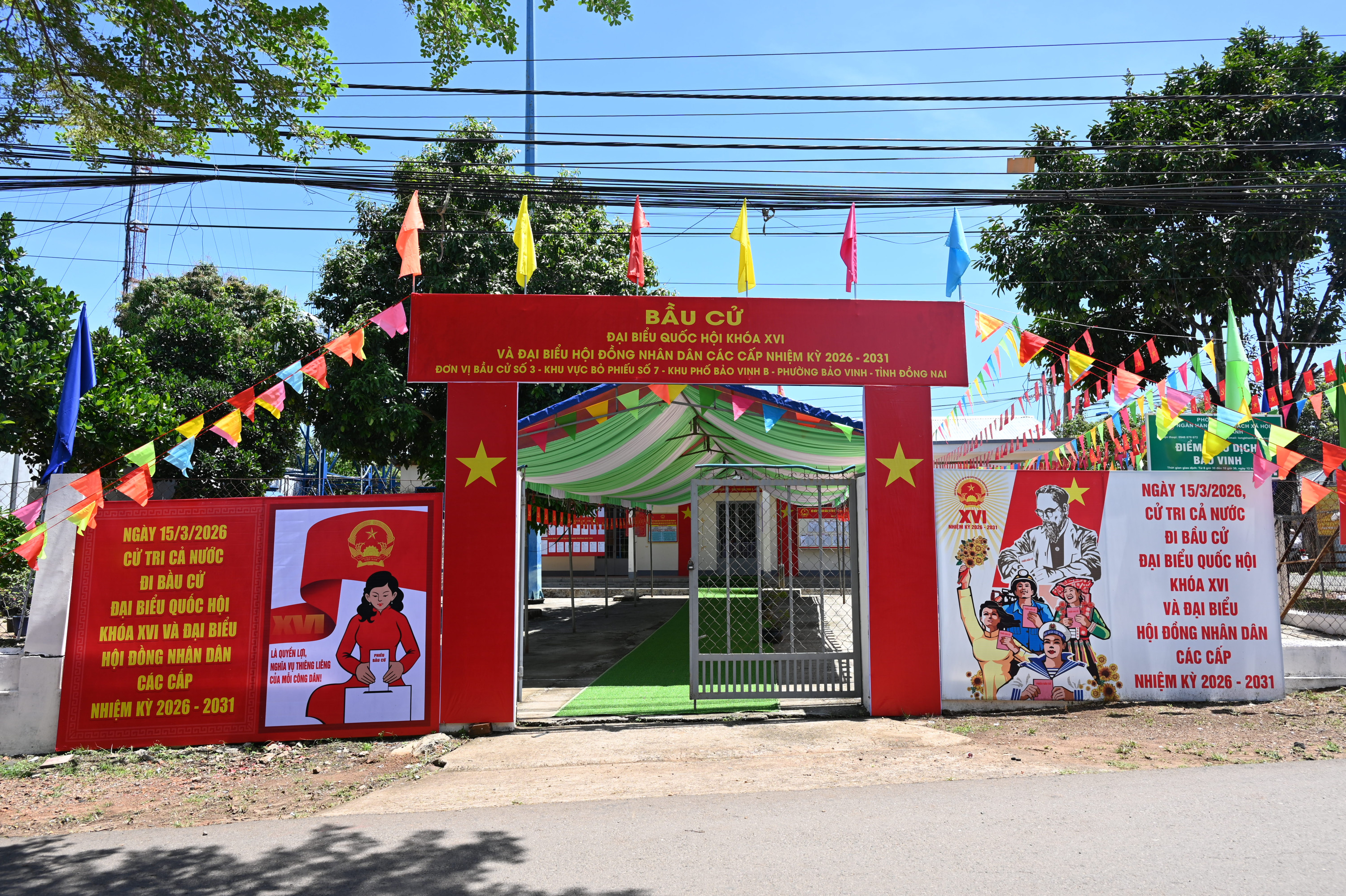 15/15 Khu vực bỏ phiếu bầu cử đại biểu Quốc hội khóa XVI và đại biểu HĐND các cấp nhiệm kỳ 2026 – 2031 trên địa bàn phường Bảo Vinh đã rực rỡ cờ Tổ quốc, băng rôn, khẩu hiệu, sẵn sàng cho Ngày hội non sông