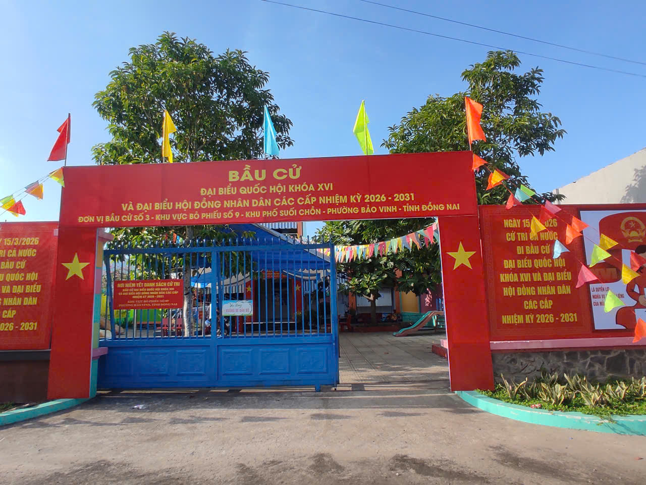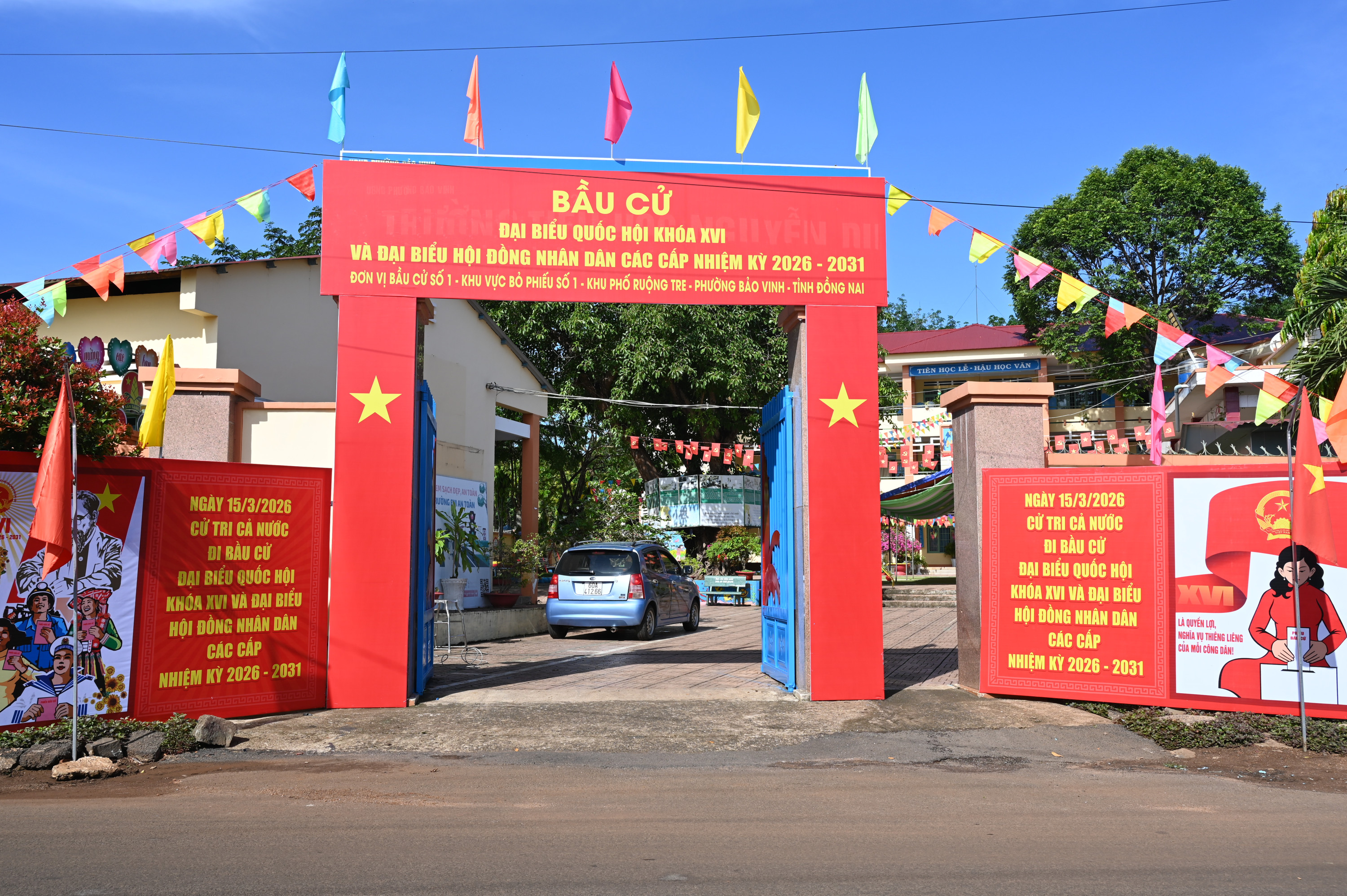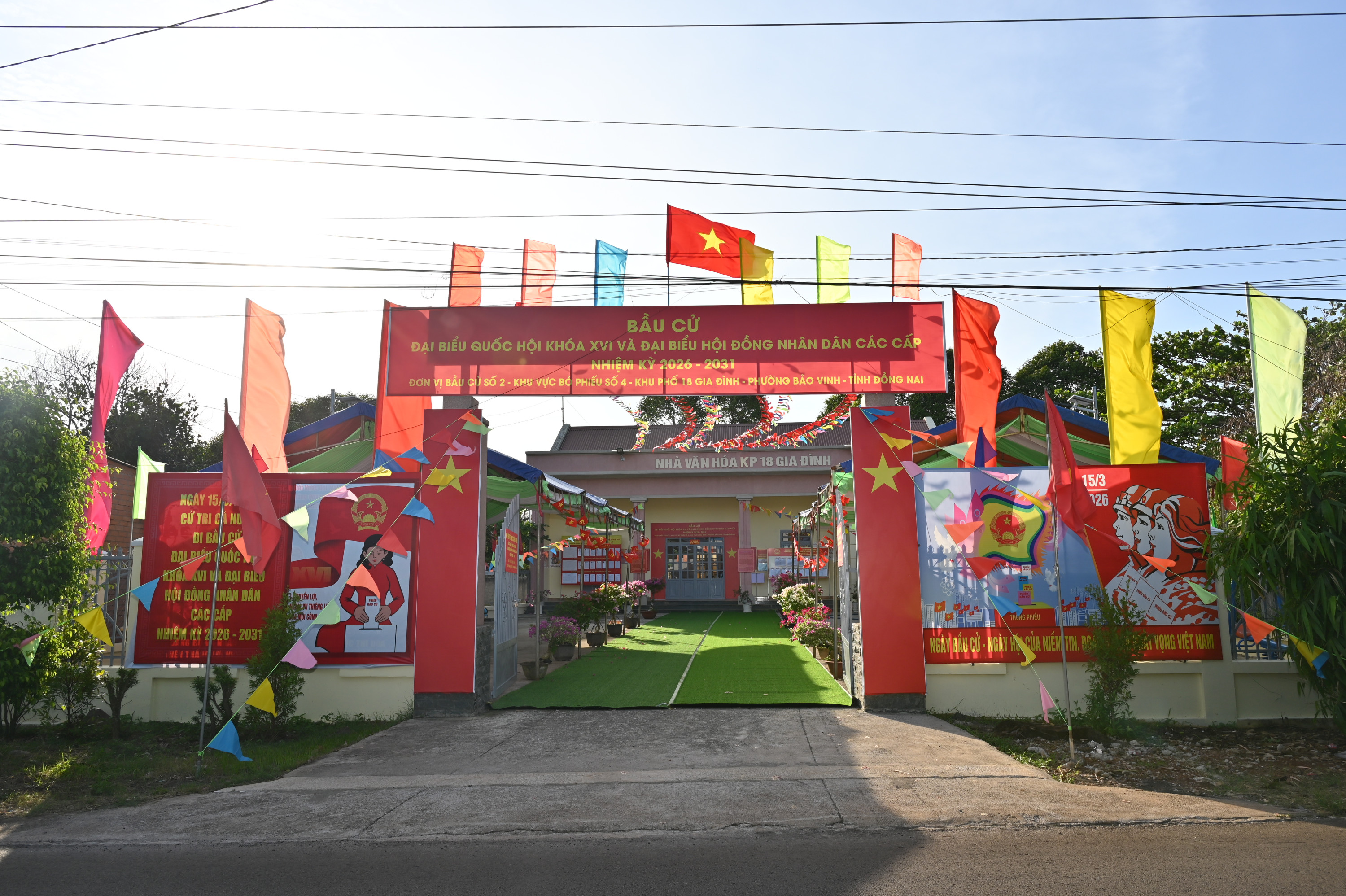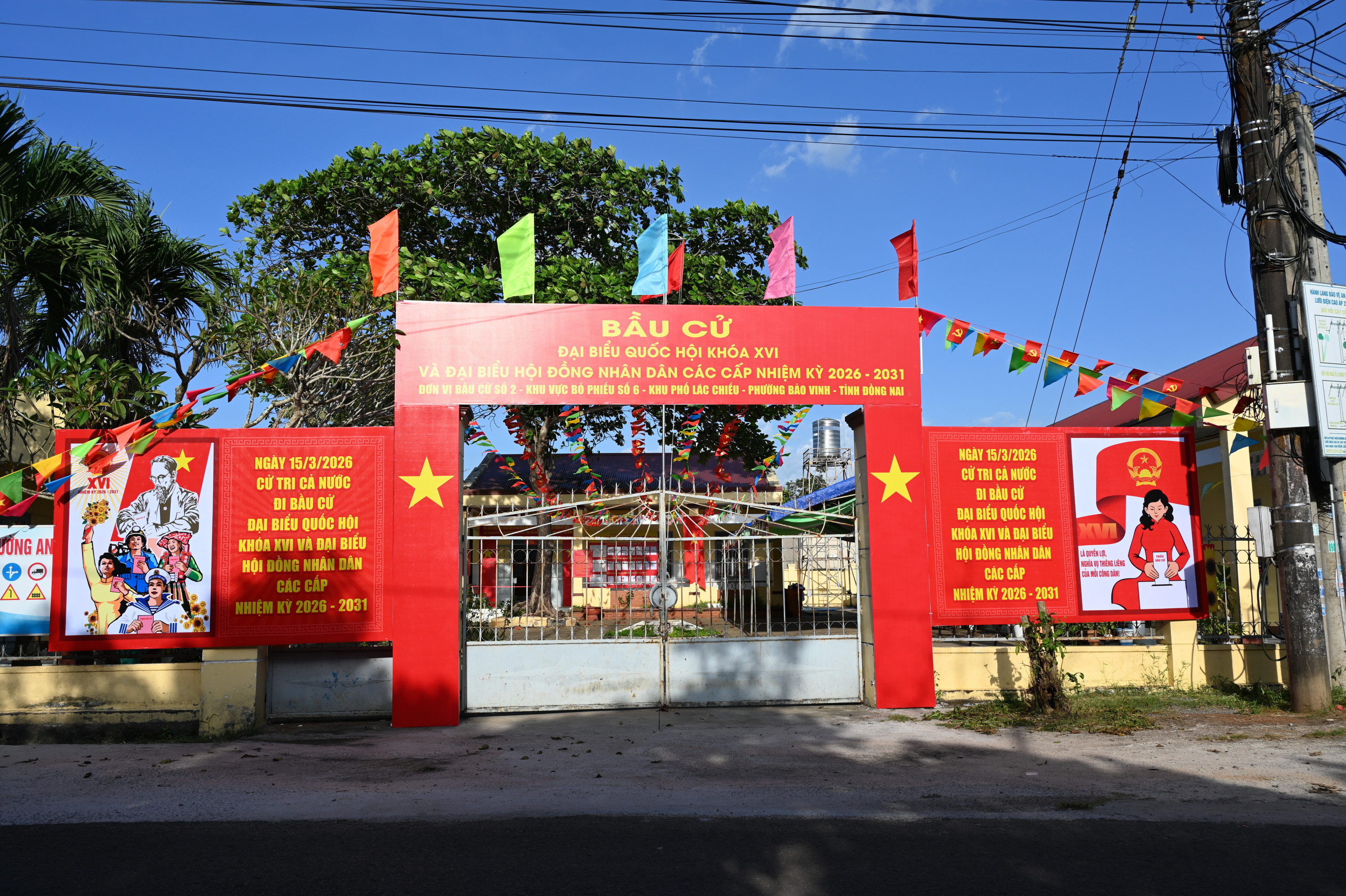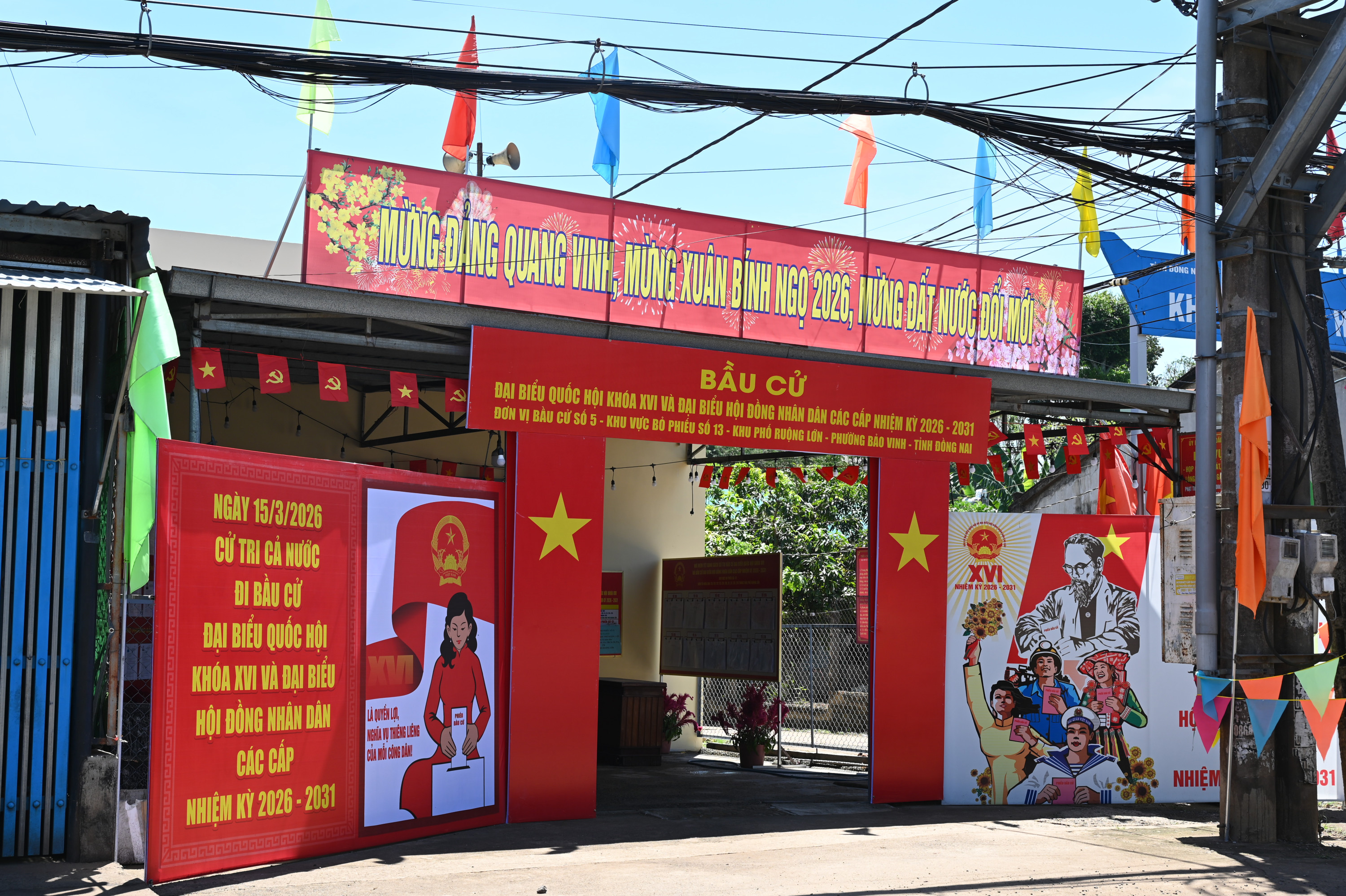 15/15 Khu vực bỏ phiếu bầu cử đại biểu Quốc hội khóa XVI và đại biểu HĐND các cấp nhiệm kỳ 2026 – 2031 trên địa bàn phường Bảo Vinh đã rực rỡ cờ Tổ quốc, băng rôn, khẩu hiệu, sẵn sàng cho Ngày hội non sông