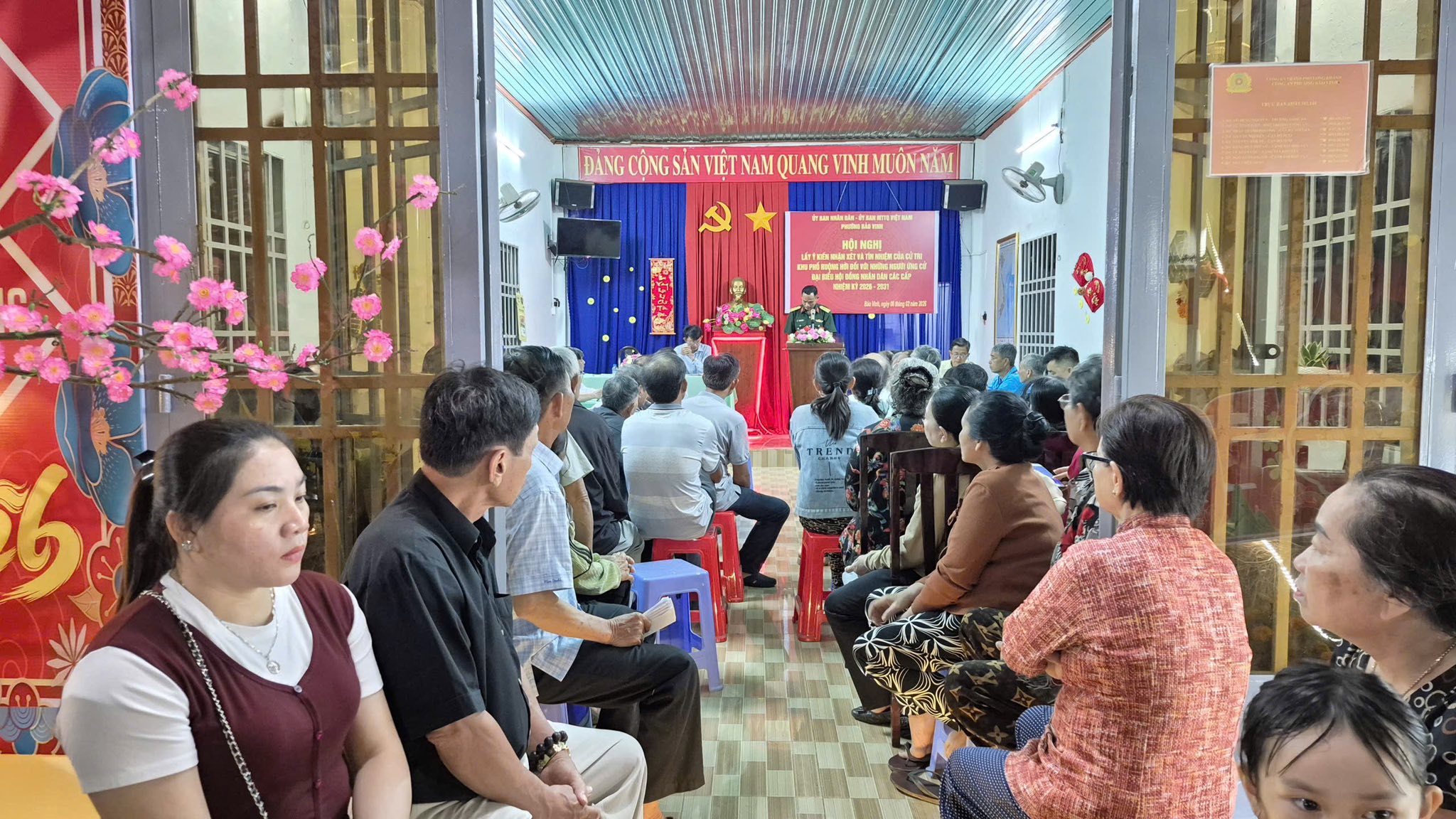 Dự và chủ tọa hội nghị có ông Lâm Hùng Cường - Ủy viên BTV Đảng ủy, Chỉ huy trưởng Ban chỉ huy Quân sự phường Bảo Vinh; ông Nguyễn Ngọc Nam - Phó Chủ tịch Ủy ban MTTQ Việt Nam phường, Chủ tịch Hội CCB phường. Dự hội nghị có 6/7 người ứng cử đại biểu HĐND phường Bảo Vinh, Bình Lộc và phường Long Khánh; cấp ủy, Ban Công tác mặt trận khu phố và 85 cử tri khu phố Ruộng Hời.