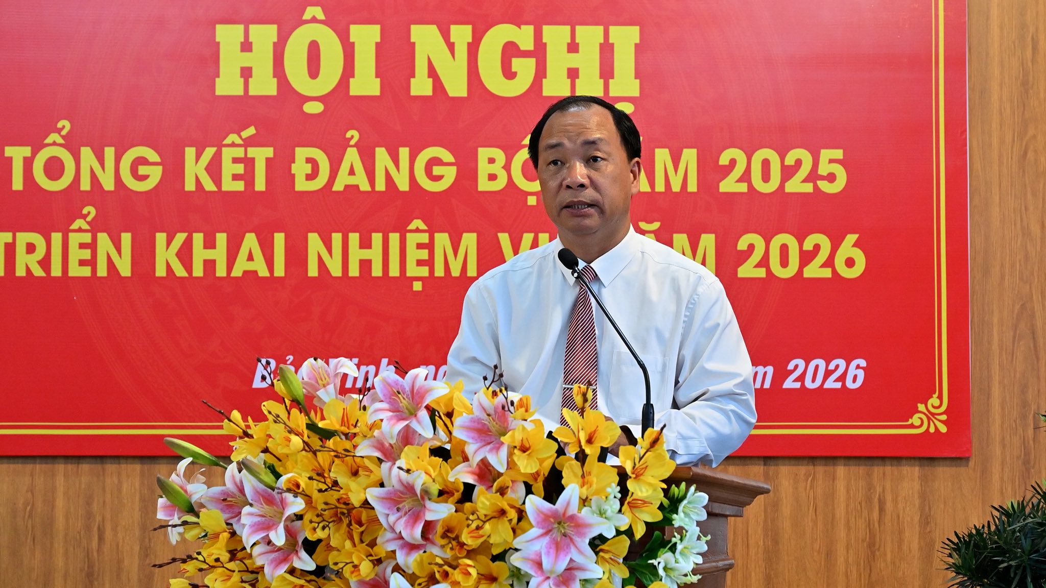 Phát biểu chỉ đạo tại hội nghị, Ủy viên Ban chấp hành Tỉnh ủy, Viện trưởng Viện kiểm sát Nhân dân tỉnh Nguyễn Quốc Hân đề nghị Đảng bộ phường tập trung tuyên truyền, quán triệt và tổ chức thực hiện tốt Nghị quyết của Đảng ủy về mục tiêu, nhiệm vụ năm 2026 đến toàn thể cán bộ, đảng viên và quần chúng Nhân dân trên địa bàn phường; lãnh đạo, chỉ đạo và hoàn thành tốt các nhiệm vụ chính trị theo Nghị quyết Đảng bộ phường năm 2026, trong đó hoàn thành thắng lợi cuộc bầu cử đại biểu Quối hội khóa XIV và đại biểu HĐND các cấp nhiệm kỳ 2026-2031 trên địa bàn. Tiếp tục triển khai thực hiện làm tốt chính sách an sinh xã hội; tăng cường các biện pháp nhằm ổn định tình hình an ninh trật tự, phòng chống tội phạm trên địa bàn; thực hiện tốt công tác cải cách hành chính tiếp công dân và giải quyết đơn thư khiếu nại tố cáo trên địa bàn; tăng cường kiểm tra, đôn đốc các bộ phận công chức trong thực hiện cải cách hành chính; nâng cao chất lượng hoạt động Trung tâm phục vụ hành chính công; tăng cường quản lý về bảo vệ môi trường.