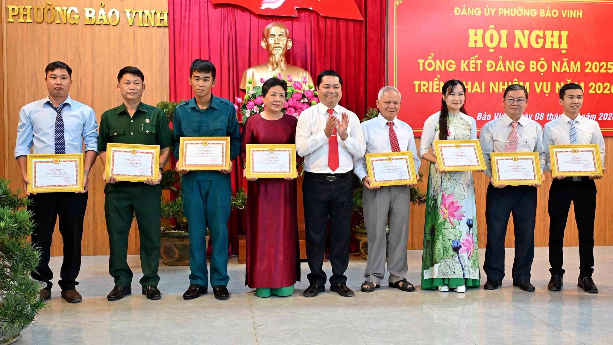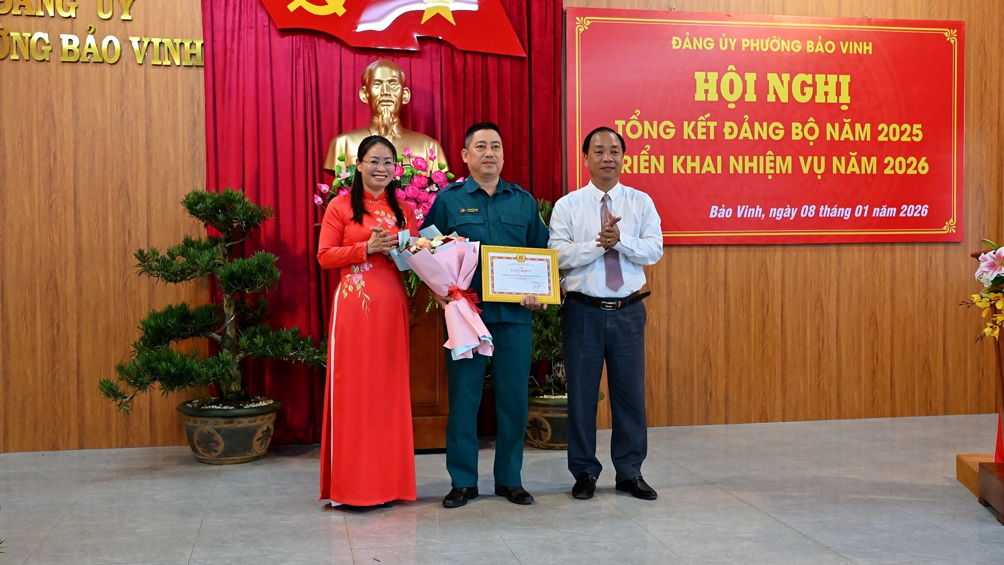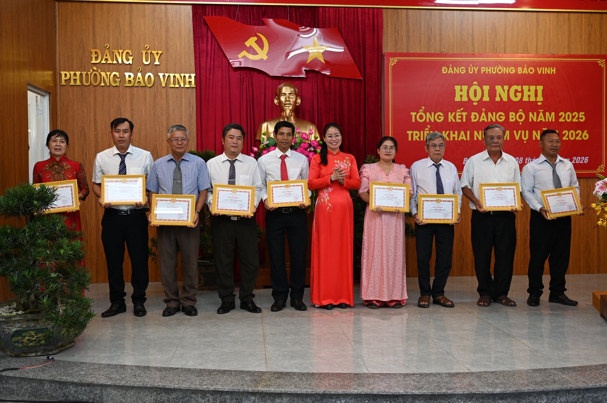 Dịp này, Ban Thường vụ Đảng ủy phường Bảo Vinh đã tặng giấy khen cho 5 tổ chức Đảng và 45 đảng viên hoàn thành xuất sắc nhiệm vụ năm 2025.