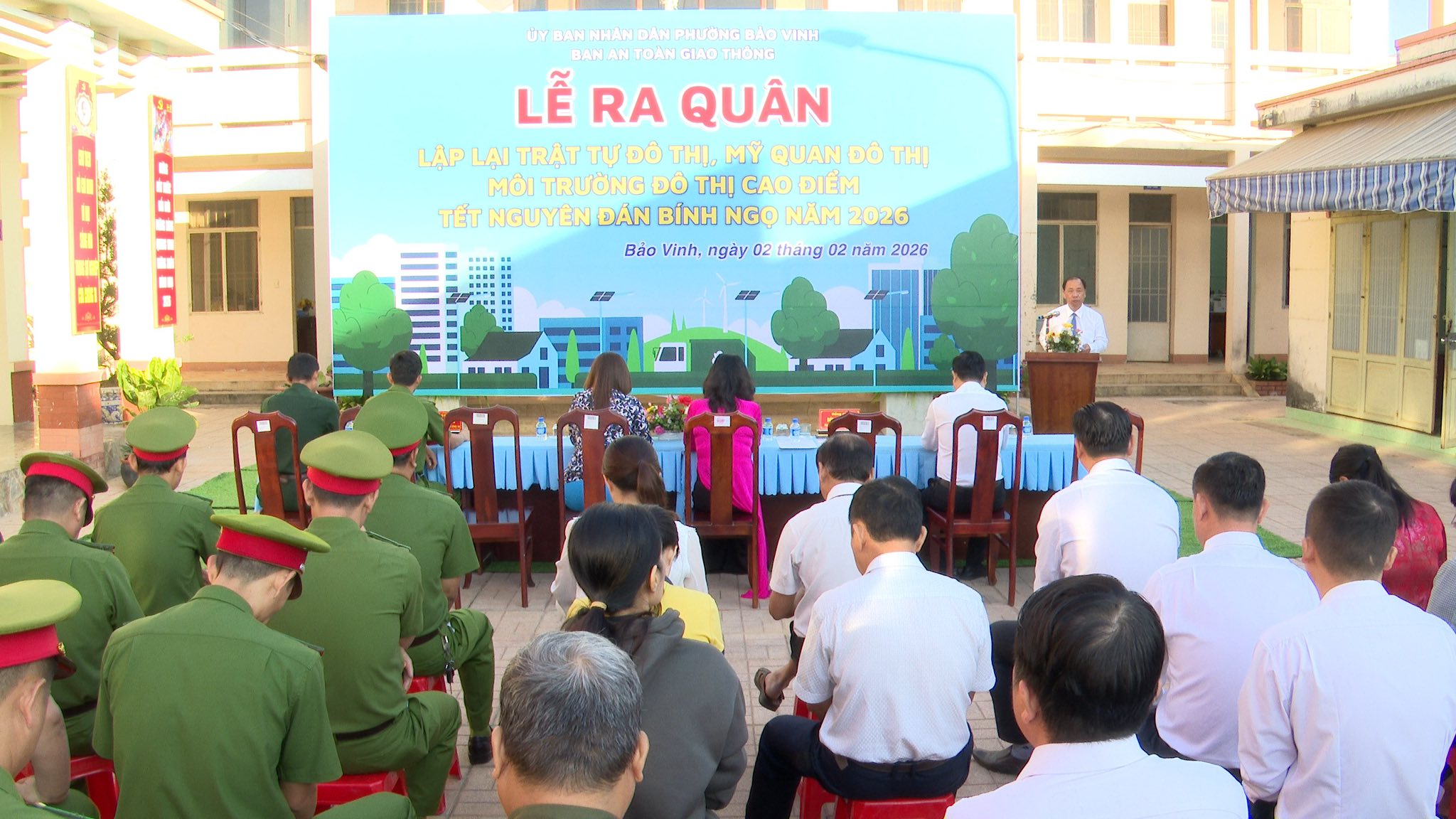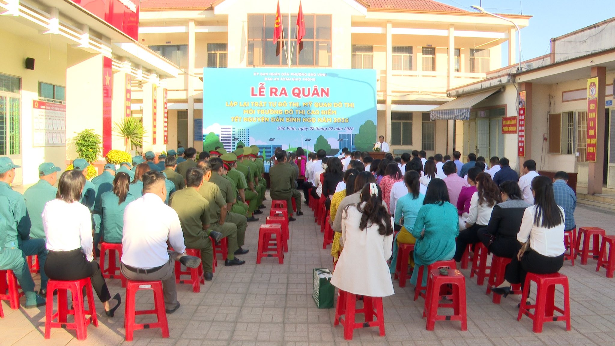 Sau chương trình, Lực lượng Ban Chỉ huy công an phường, phối hợp cùng các Ban ngành, các khu phố đã ra quân công tác lập lại trật tự đô thị, mỹ quan đô thị, môi trường đô thị, cao điểm tết Nguyên đán Bính Ngọ năm 2026.