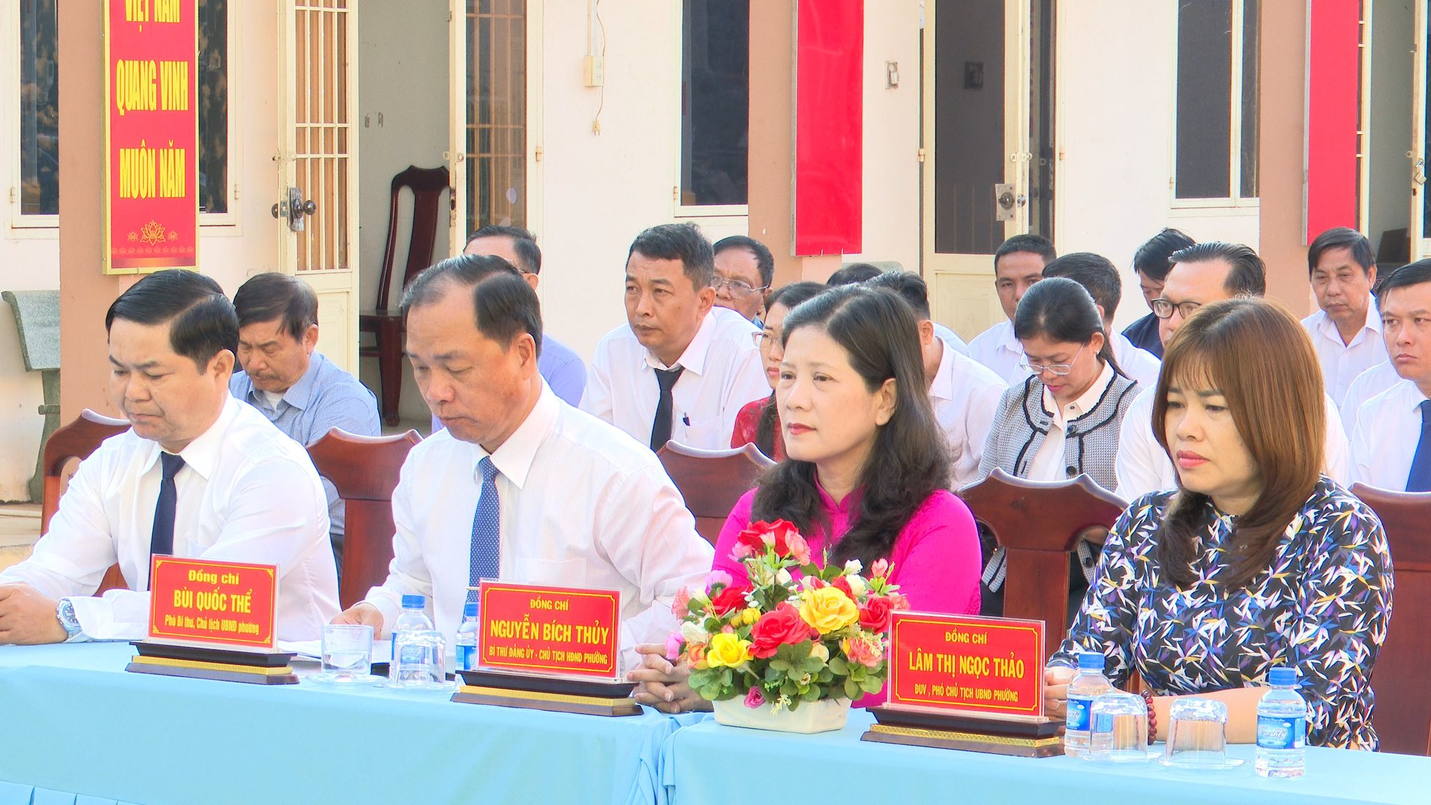 Dự có Đồng chí Nguyễn Bích Thủy - Bí thư Đảng ủy - Chủ tịch HĐND phường; Đồng chí Bùi Quốc Thể - Phó Bí thư Đảng ủy - Chủ tịch UBND phường; Đồng chí Lâm Thị Ngọc Thảo – ĐUV – Phó chủ tịch UBND phường; Đồng chí Nguyễn Đức Sơn – UVBTV, Chủ nhiệm UBKT Đảng ủy; các đồng chí Ban Thường vụ Đảng uỷ; các đồng chí Ủy viên Ban Chấp hành Đảng uỷ; các đồng chí Thường trực HĐND phường; UBMTTQ Việt Nam phường; Lãnh đạo các phòng ban chuyên môn phường cùng tham dự.