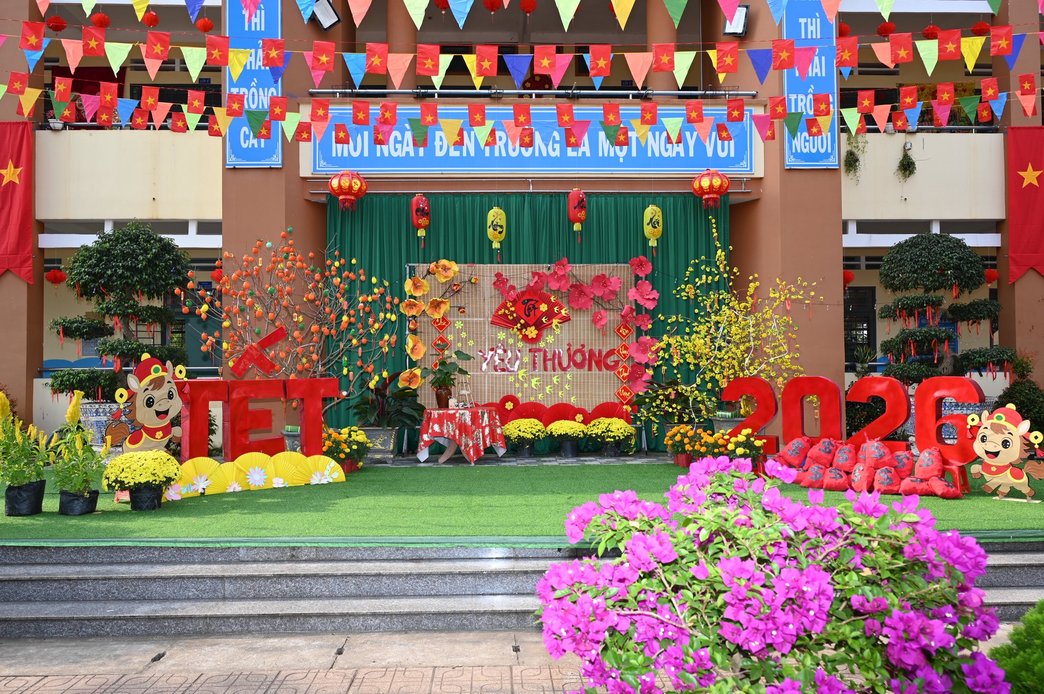 Ghi nhận tại 8 trường gồm mầm non, tiểu học và THCS trên địa bàn, không khí xuân đã tràn ngập khắp nơi. Từ cổng trường cho đến từng lớp học, các thầy cô giáo cùng các em học sinh đã gửi gắm rất nhiều tâm huyết vào những tiểu cảnh sáng tạo.