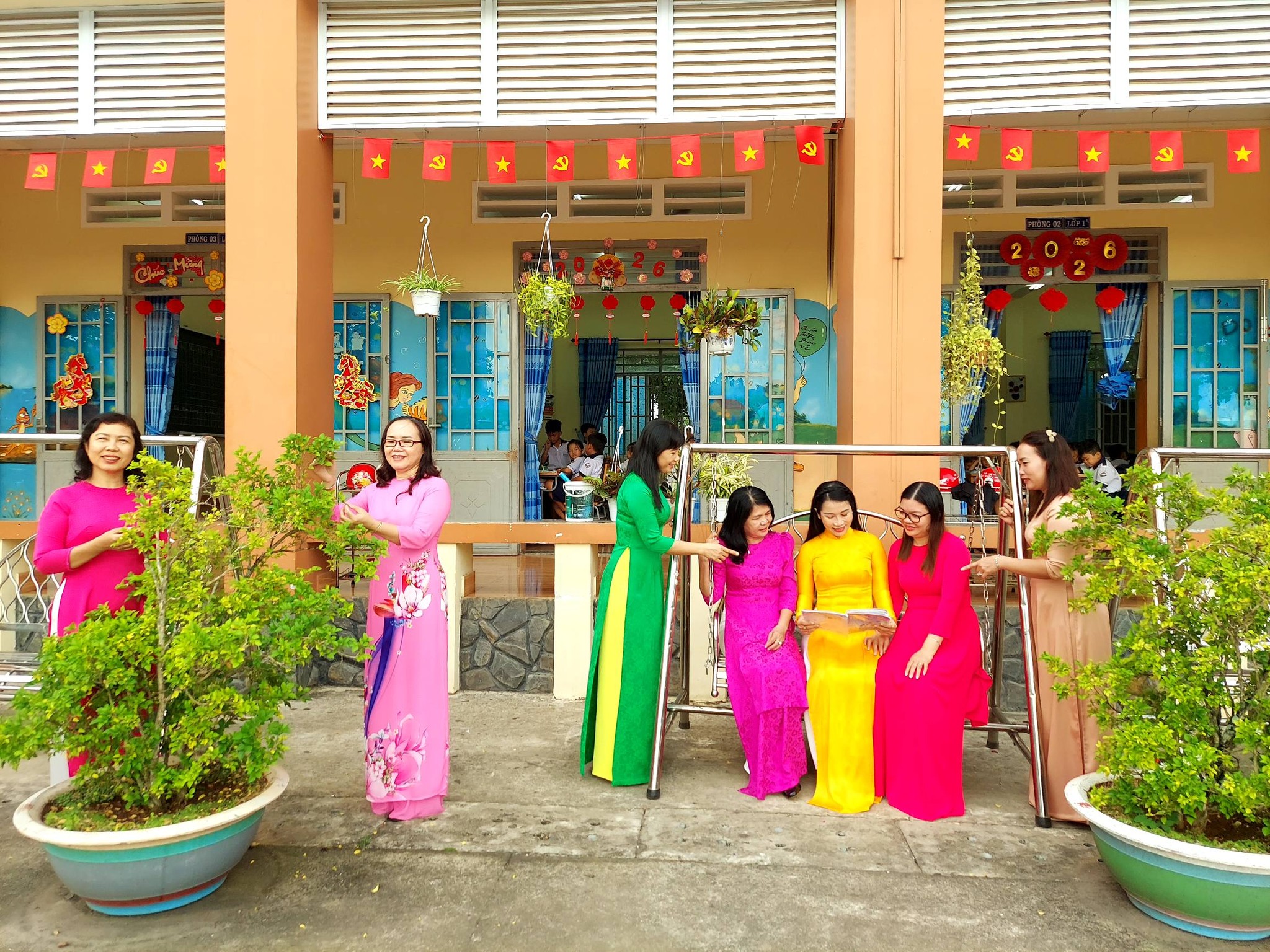 Ngay từ những ngày đầu phát động, khuôn viên trường Tiểu học Lý Tự Trọng như được khoác lên mình một diện mạo mới. Không chỉ còn là bảng đen, phấn trắng, sân trường giờ đây biến thành một "vườn hoa" rực rỡ khi toàn thể nữ cán bộ, giáo viên và nhân viên cùng đồng loạt diện những tà áo dài thướt tha.