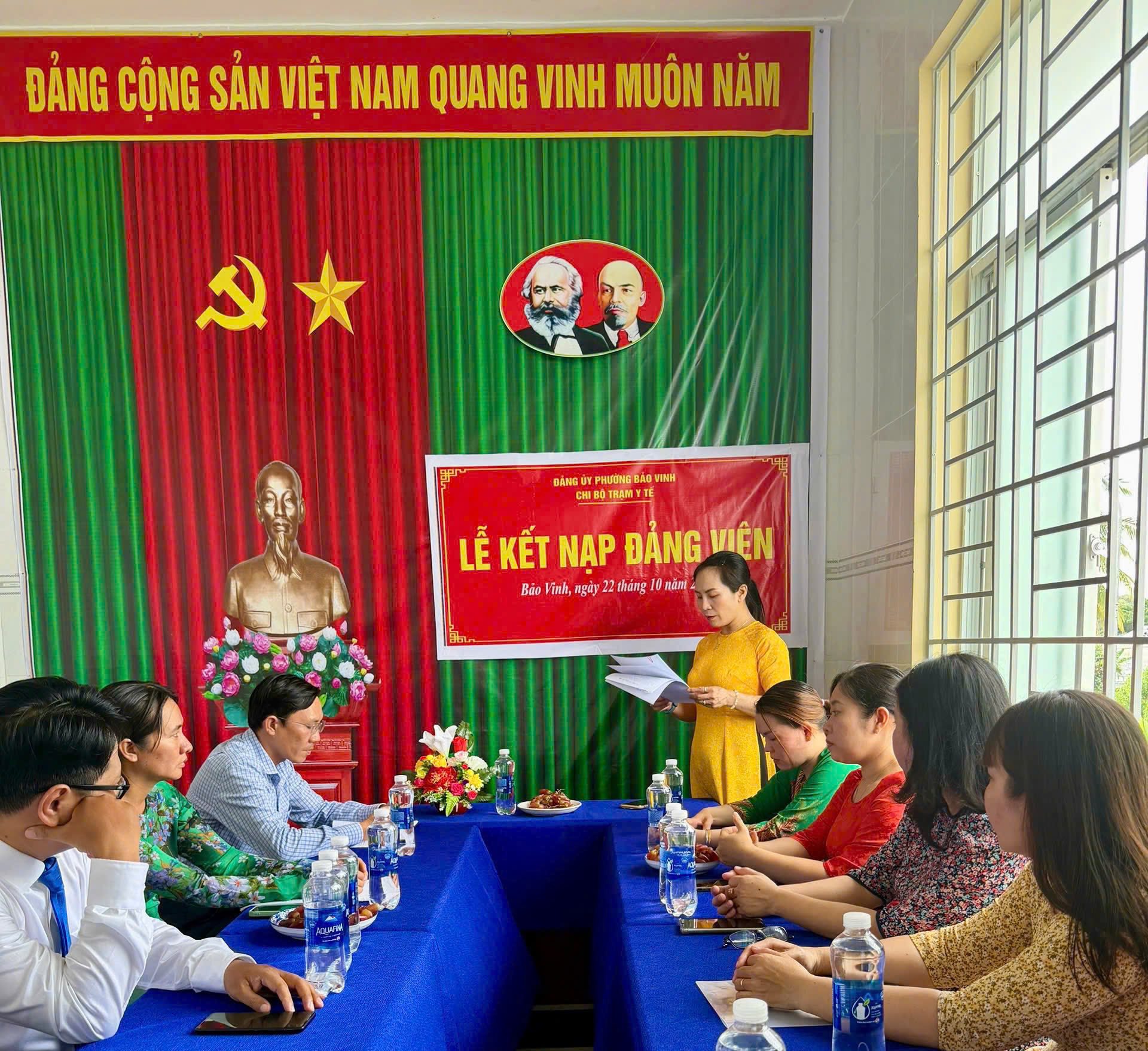 Chi bộ Trạm y tế và Đảng bộ trường THCS Ngô Quyền, những tổ chức cơ sở Đảng đầu tiên của phường Bảo Vinh tổ chức lễ kết nạp Đảng viên sau khi thực hiện mô hình chính quyền địa phương 2 cấp